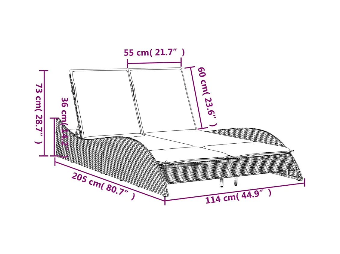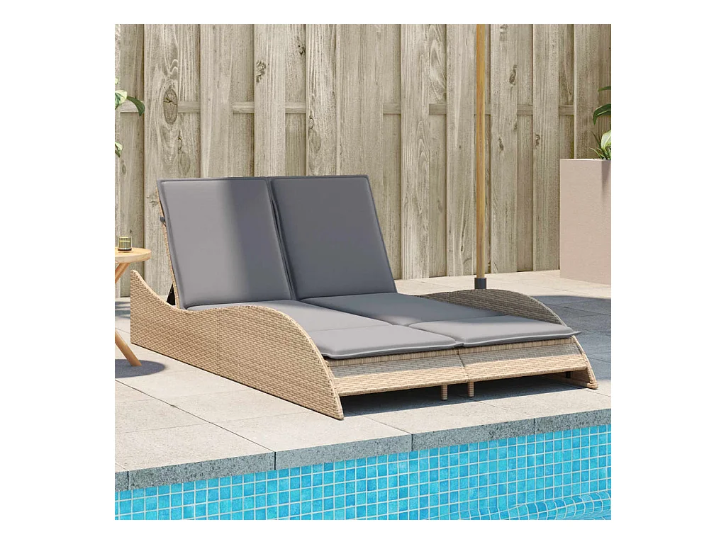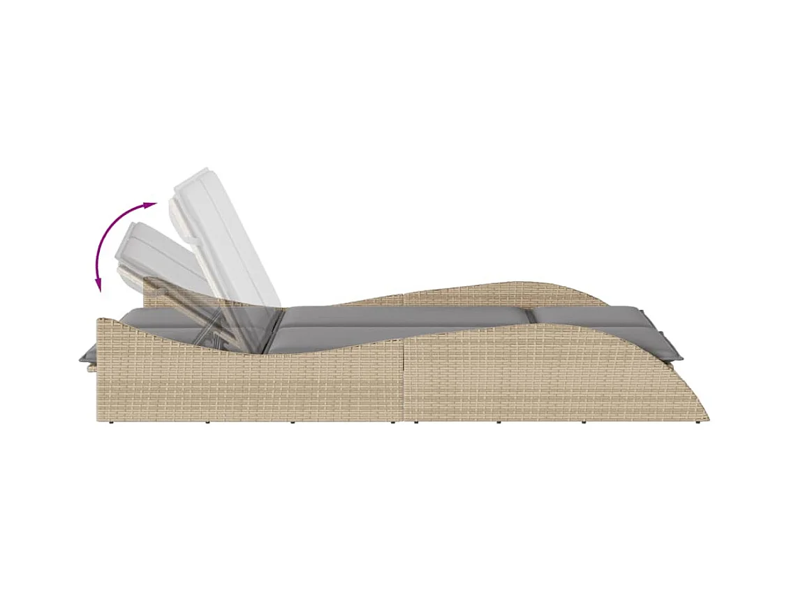 Dubbele chaise longue met beige kunsthars rieten kussens