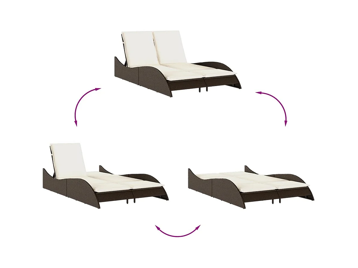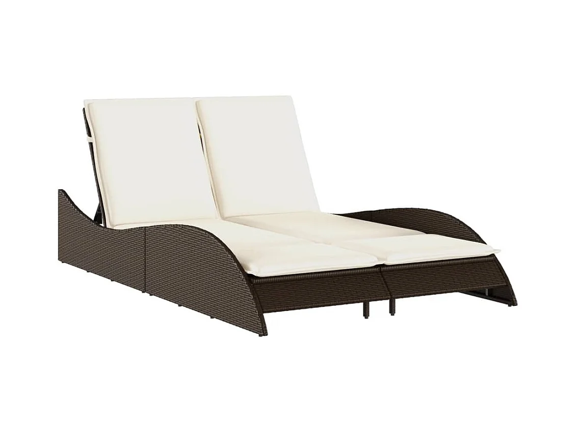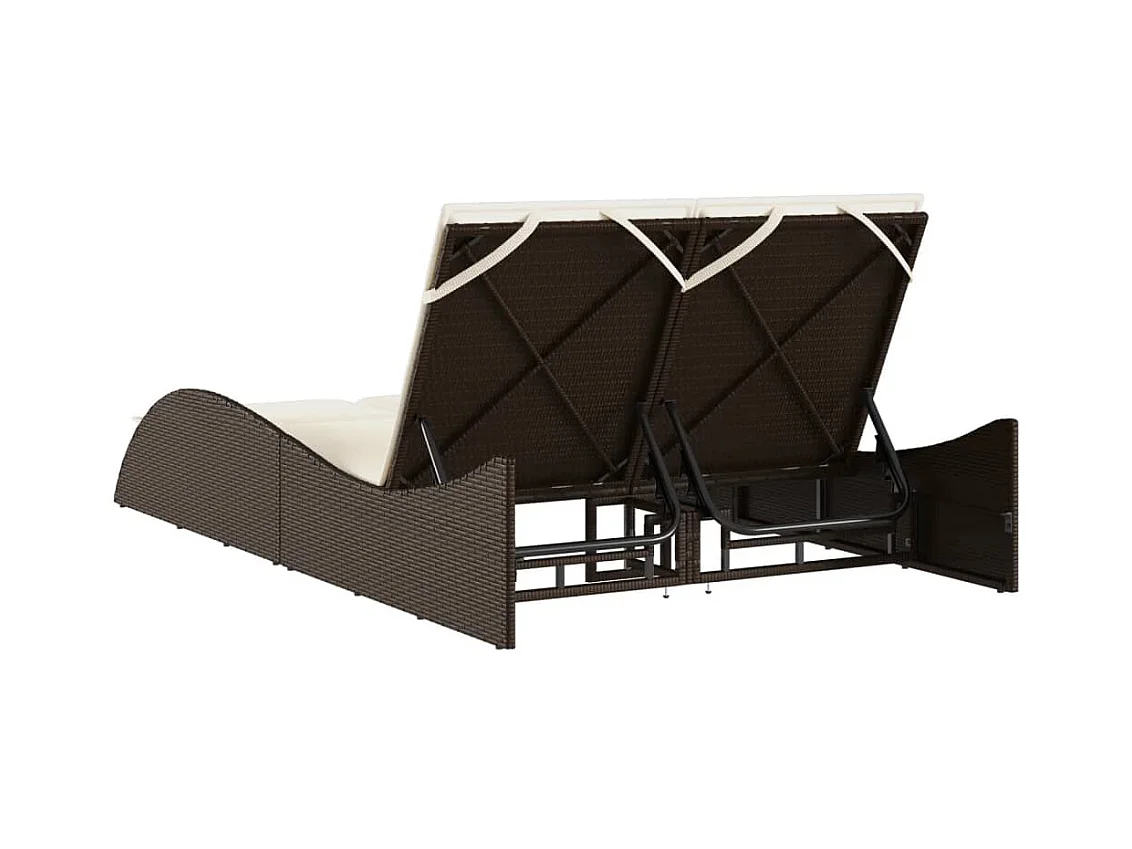 Dubbele chaise longue met bruine kunsthars rieten kussens