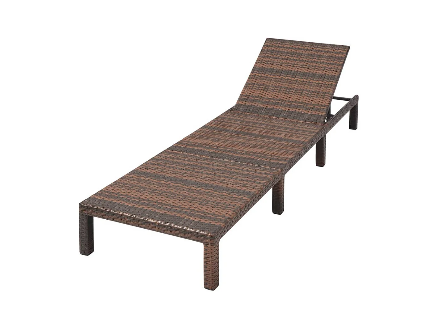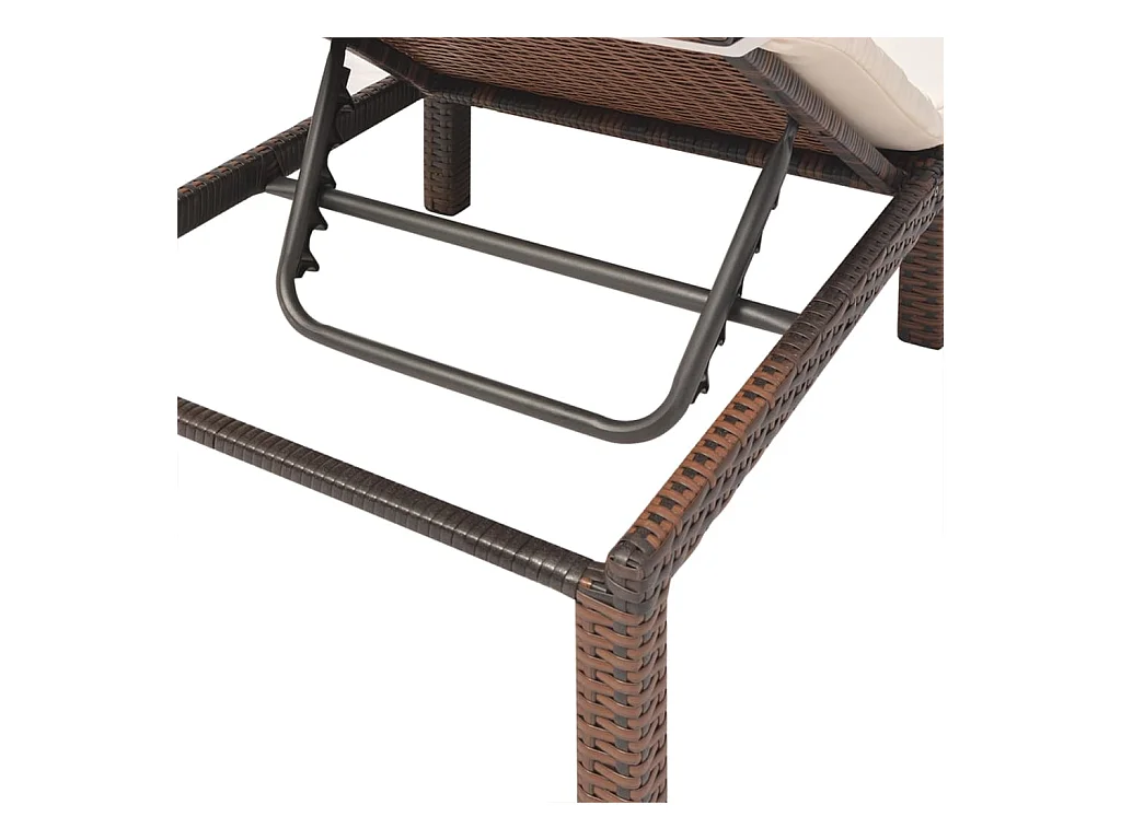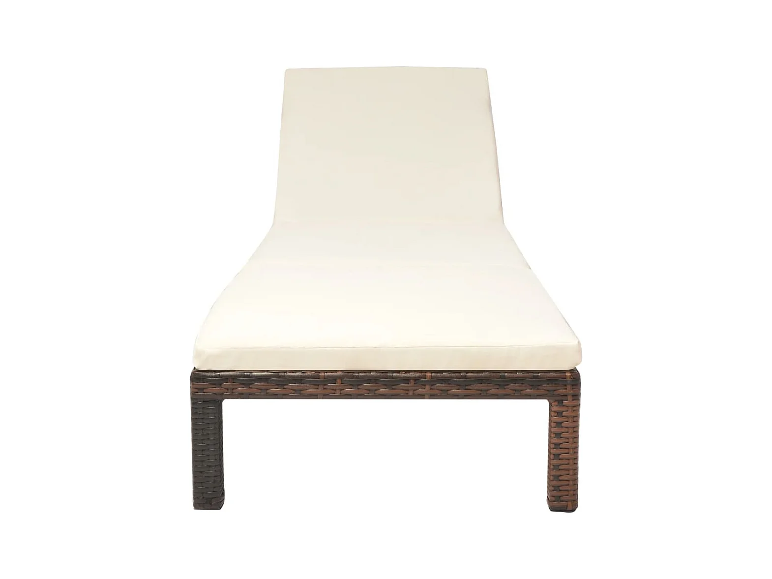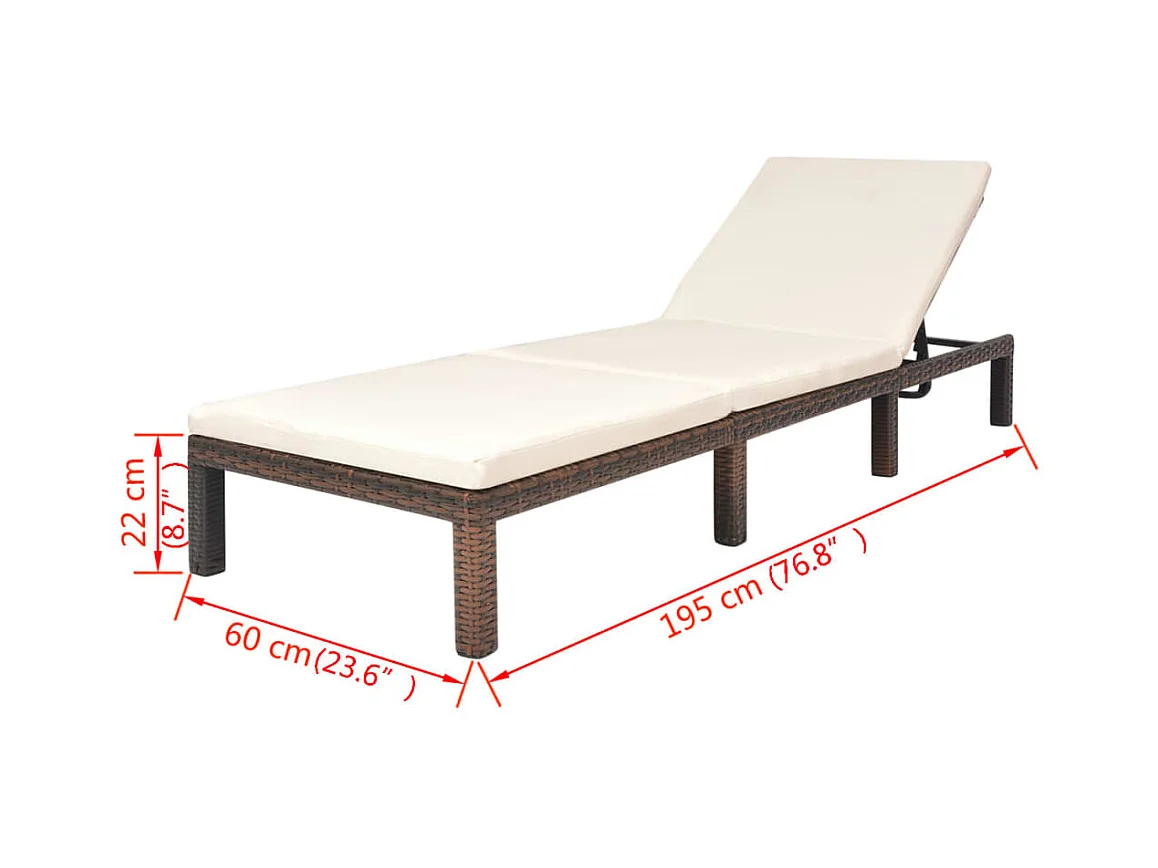 Chaise longue met zonnescherm en bruin geweven harskussen