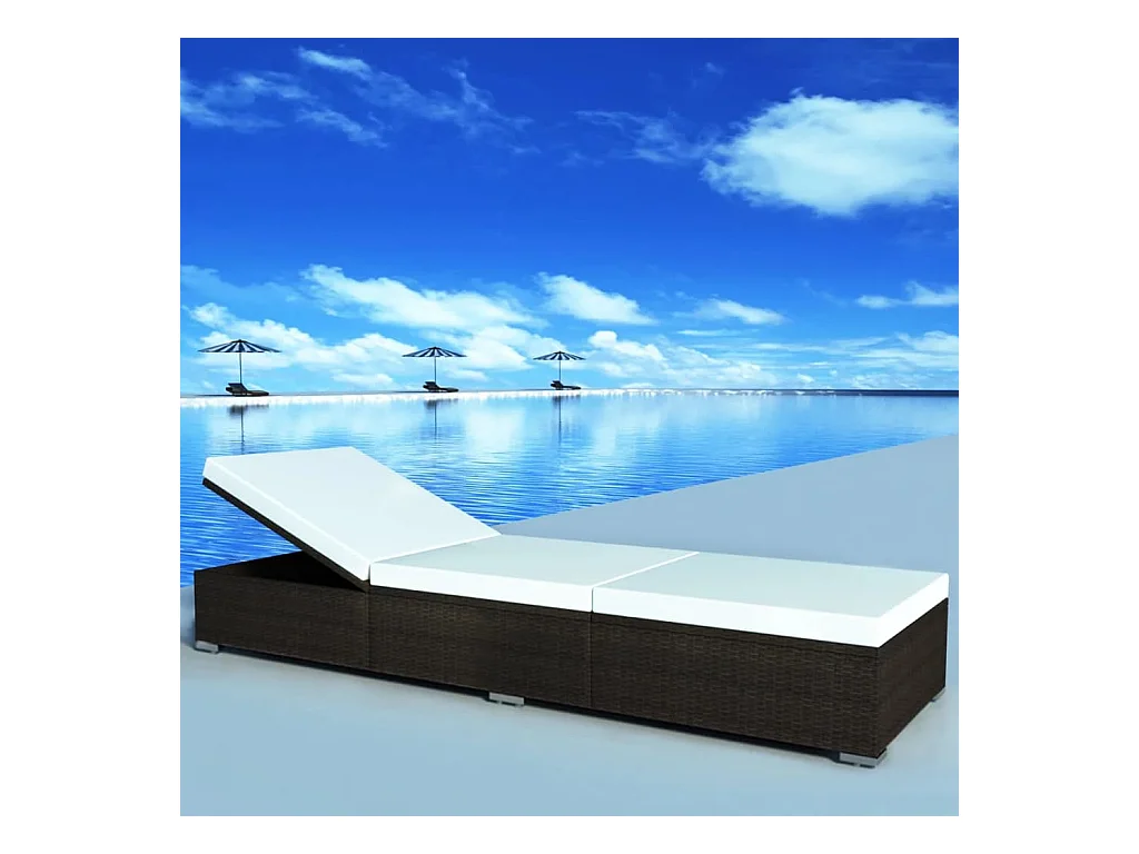 Chaise longue met zonnescherm en bruin geweven harskussen