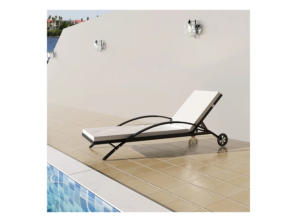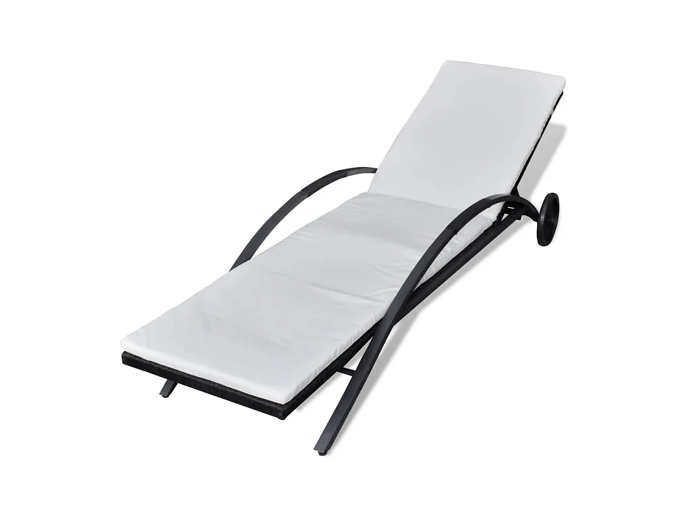 Chaise longue met kussen en wielen Zwarte geweven hars