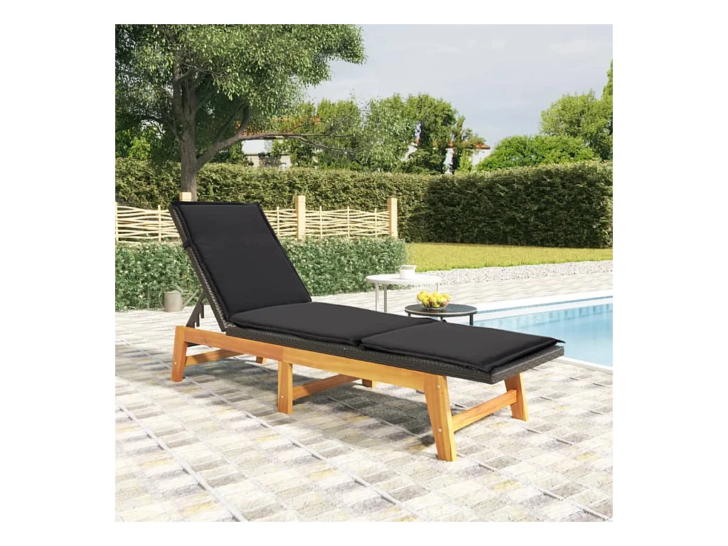 Chaise longue met zwart kussen Geïmpregneerd grenenhout