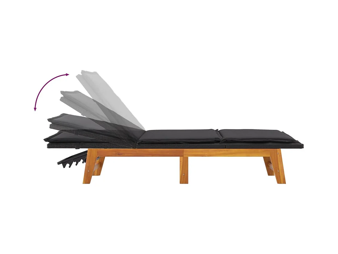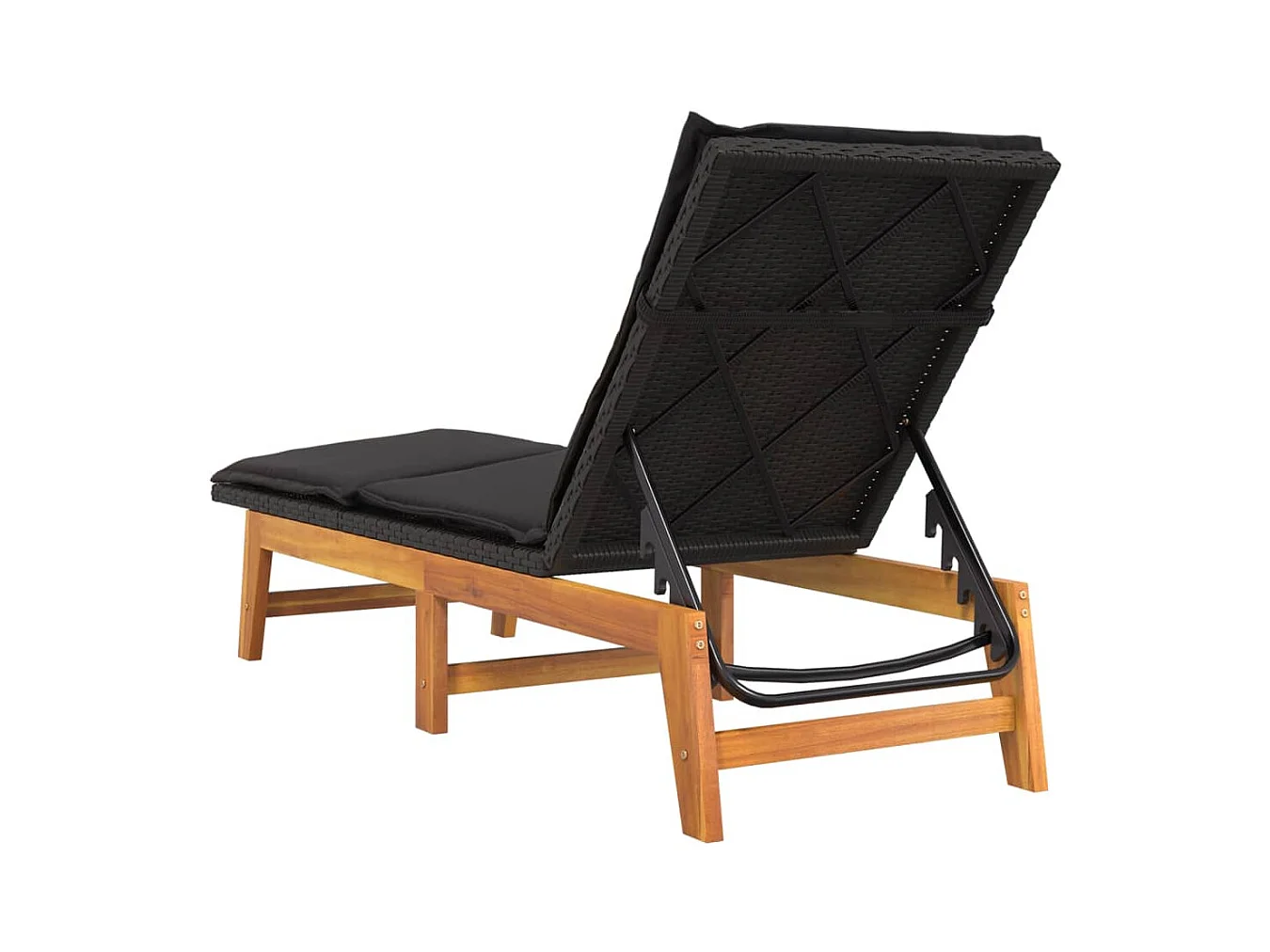 Chaise longue met kussen van kunstharsriet/massief acaciahout