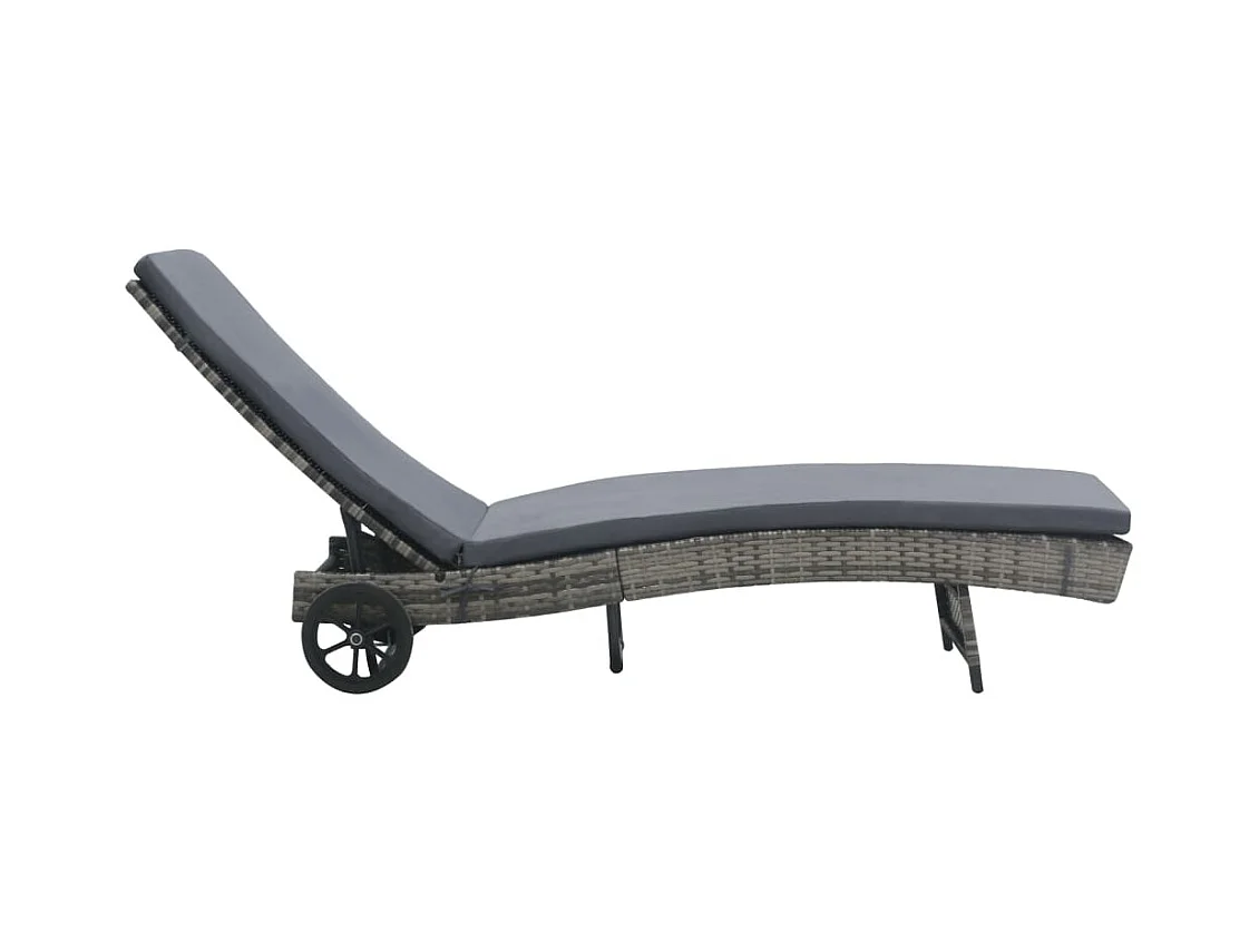 Chaise longue met wielen en kussen Antraciet gevlochten hars