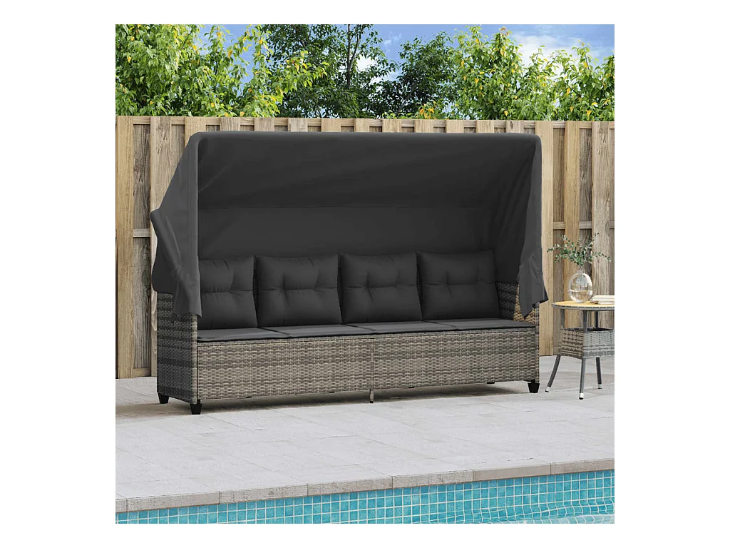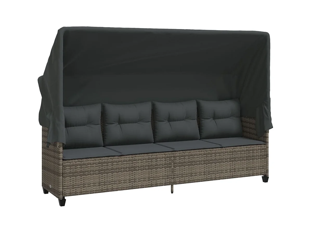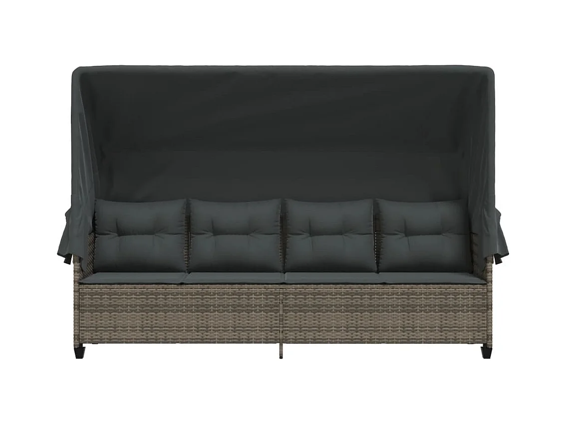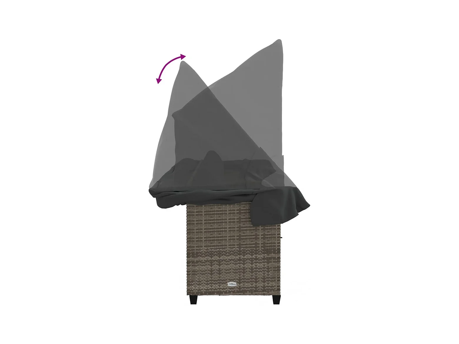 Chaise longue met rond dak grijs 211x57x140 cm gevlochten hars