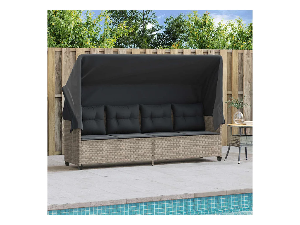 Chaise longue met rond dak grijs 211x57x140 cm gevlochten hars