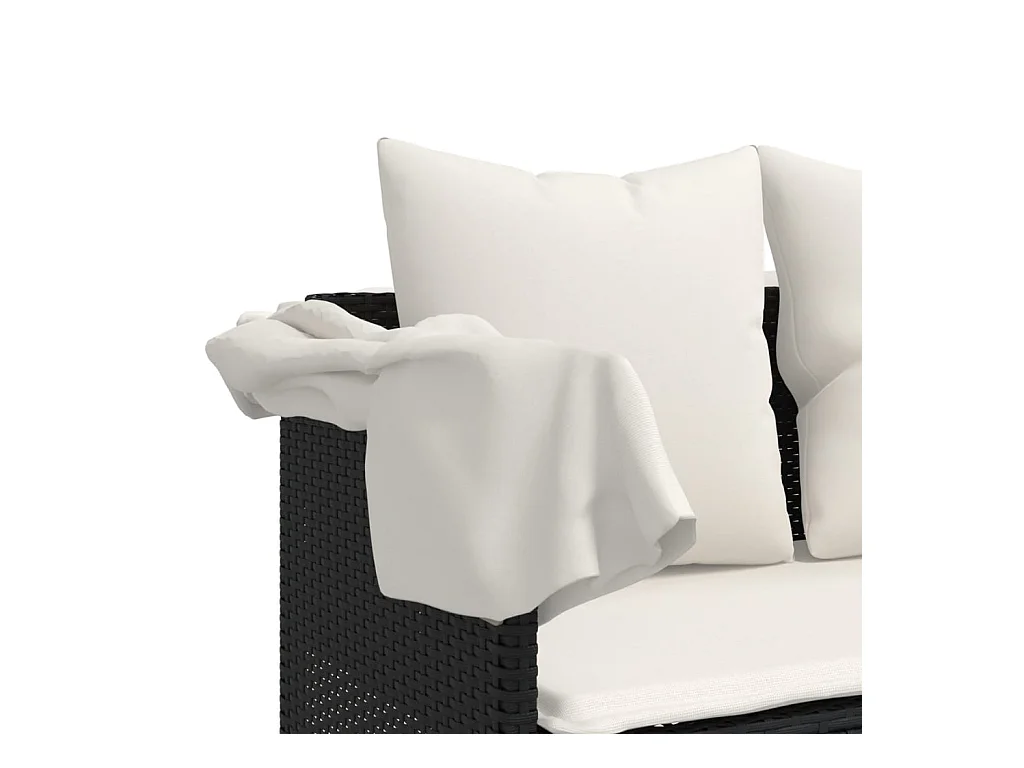 Chaise longue met kussen en wielen Zwarte geweven hars