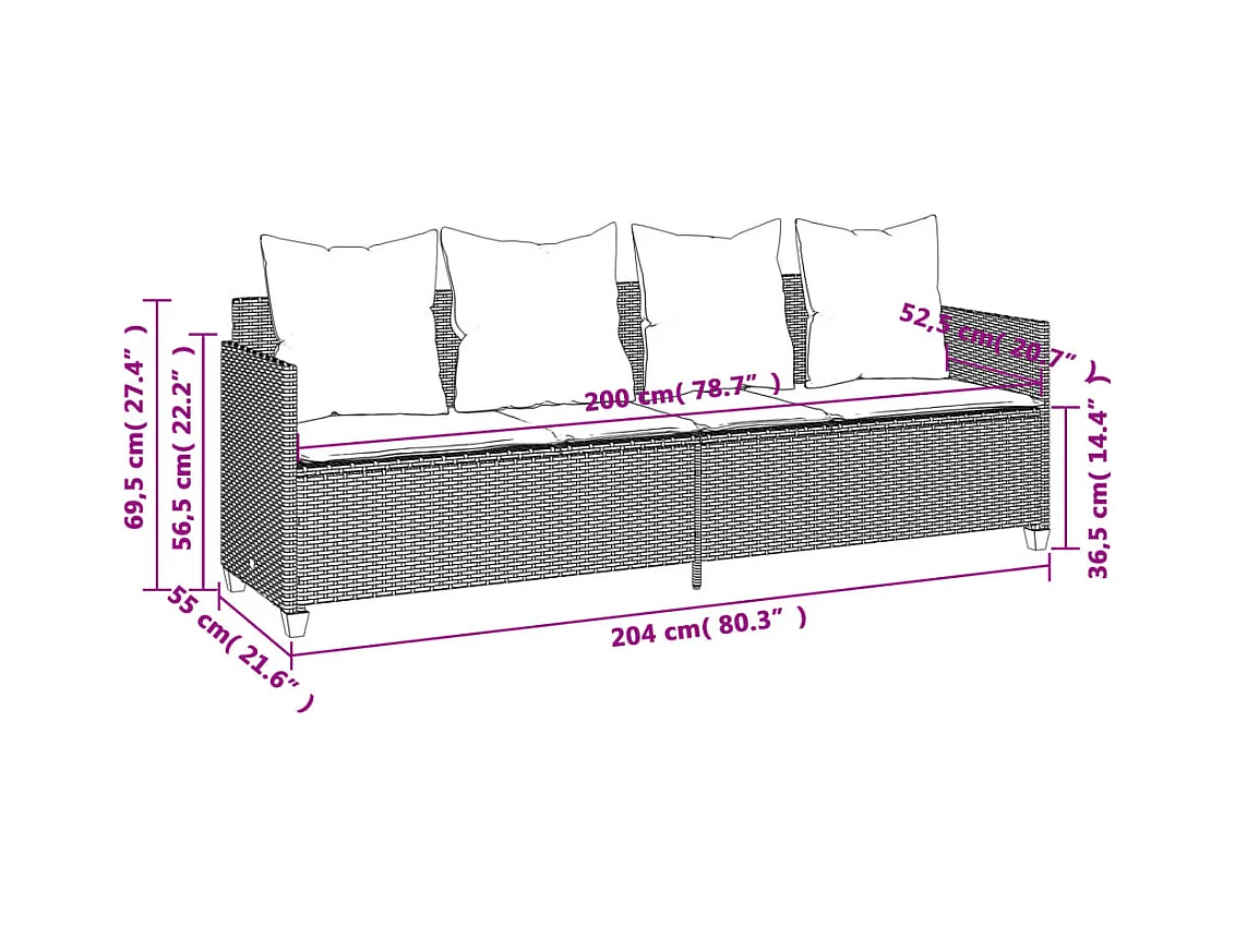 stuk chaise longue met zwart kussen 201x55x62cm hars riet