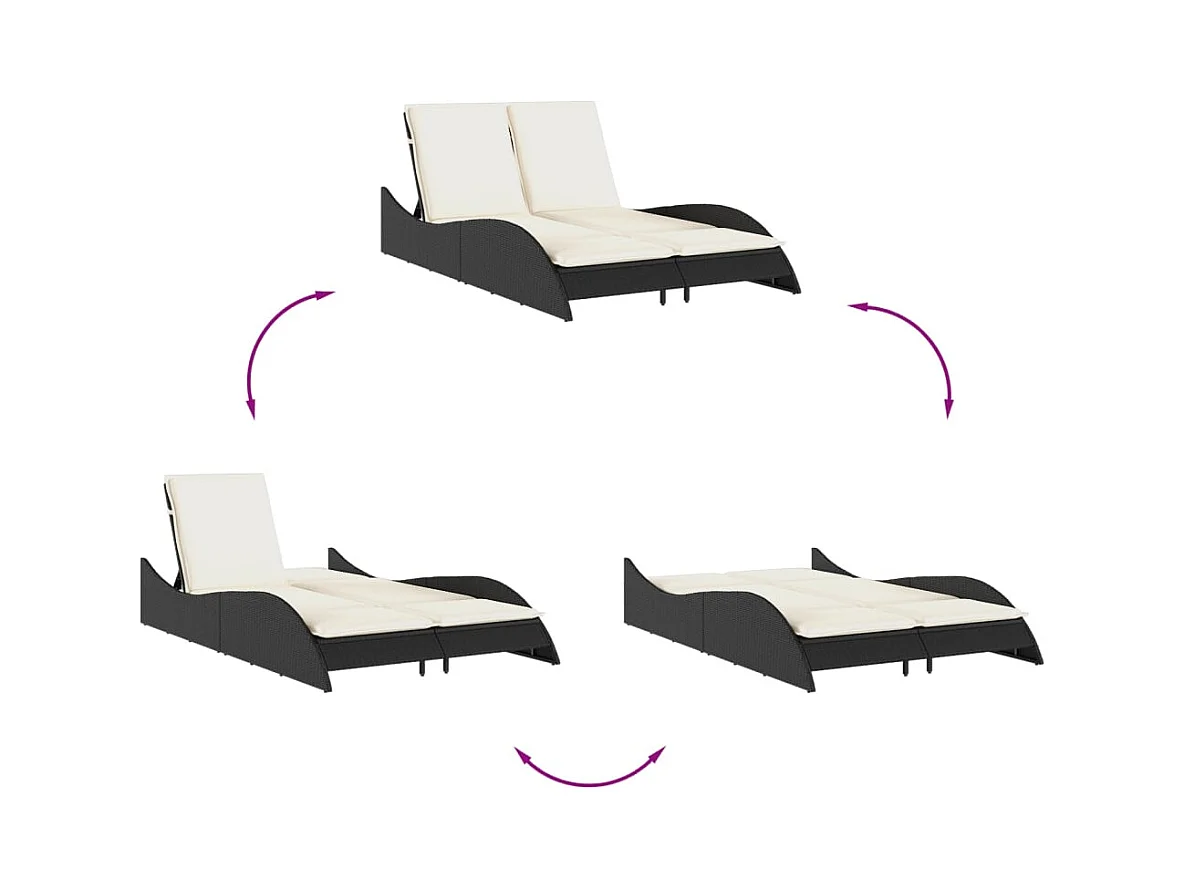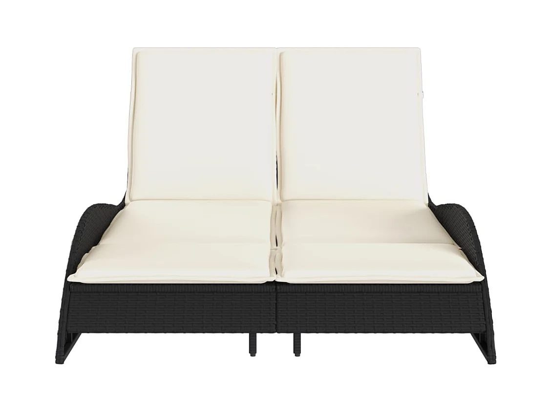 Chaise longue met zwarte kussens 114x205x73 cm geweven hars