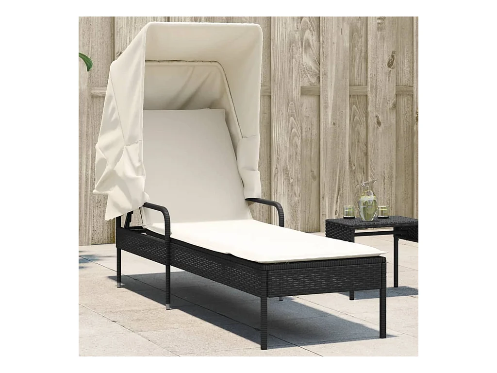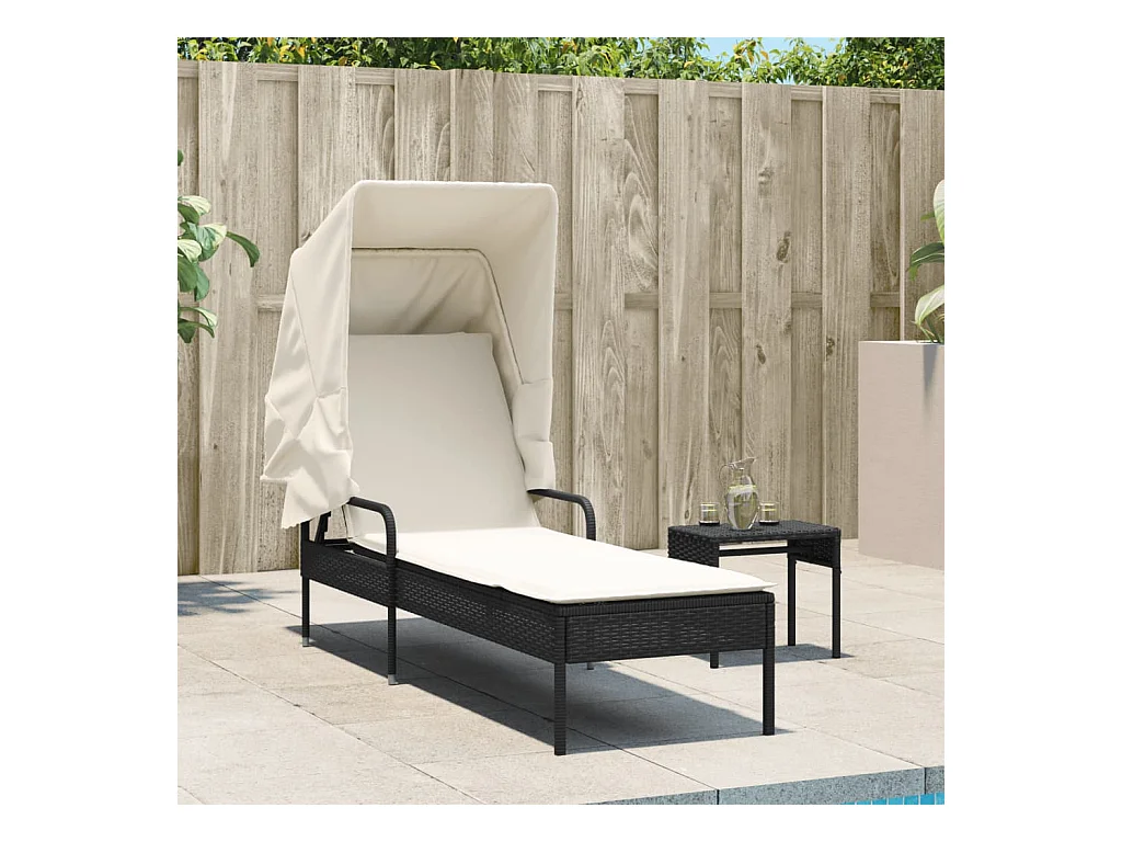 Opvouwbare loungestoel met kussen en opbergruimte van zwart geweven hars