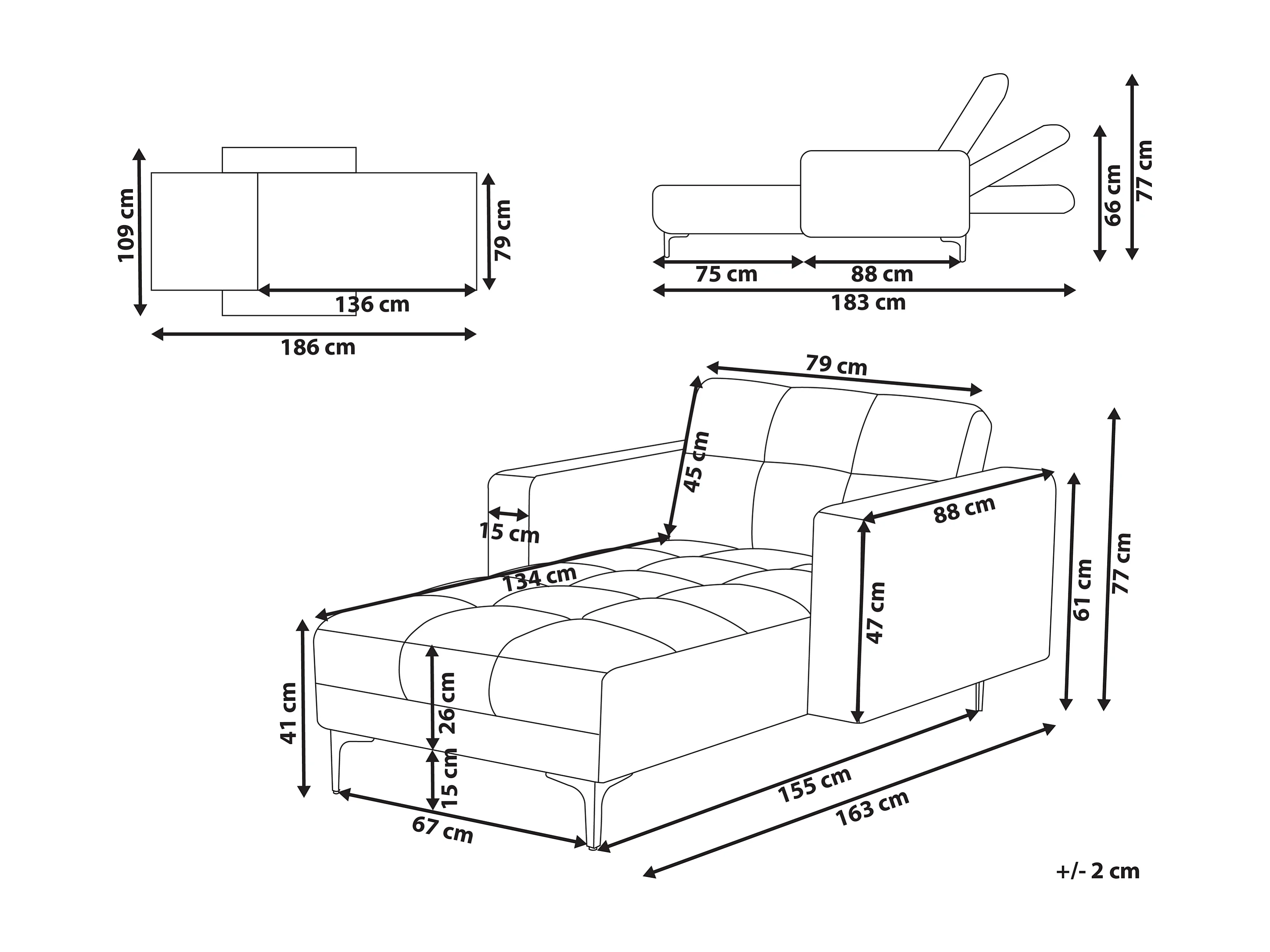 Chaise longue ALNES Stof Gebroken wit