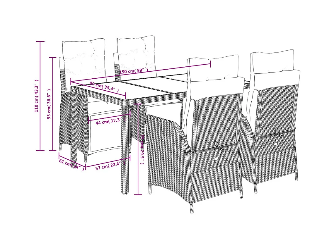 Vrikja 5-delige Tuinset met kussens poly rattan zwart
