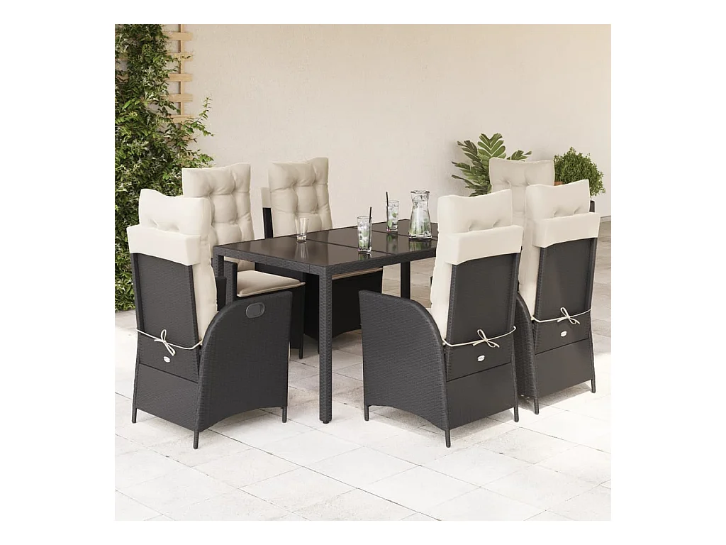 Vrikja 7-delige Tuinset met kussens poly rattan zwart