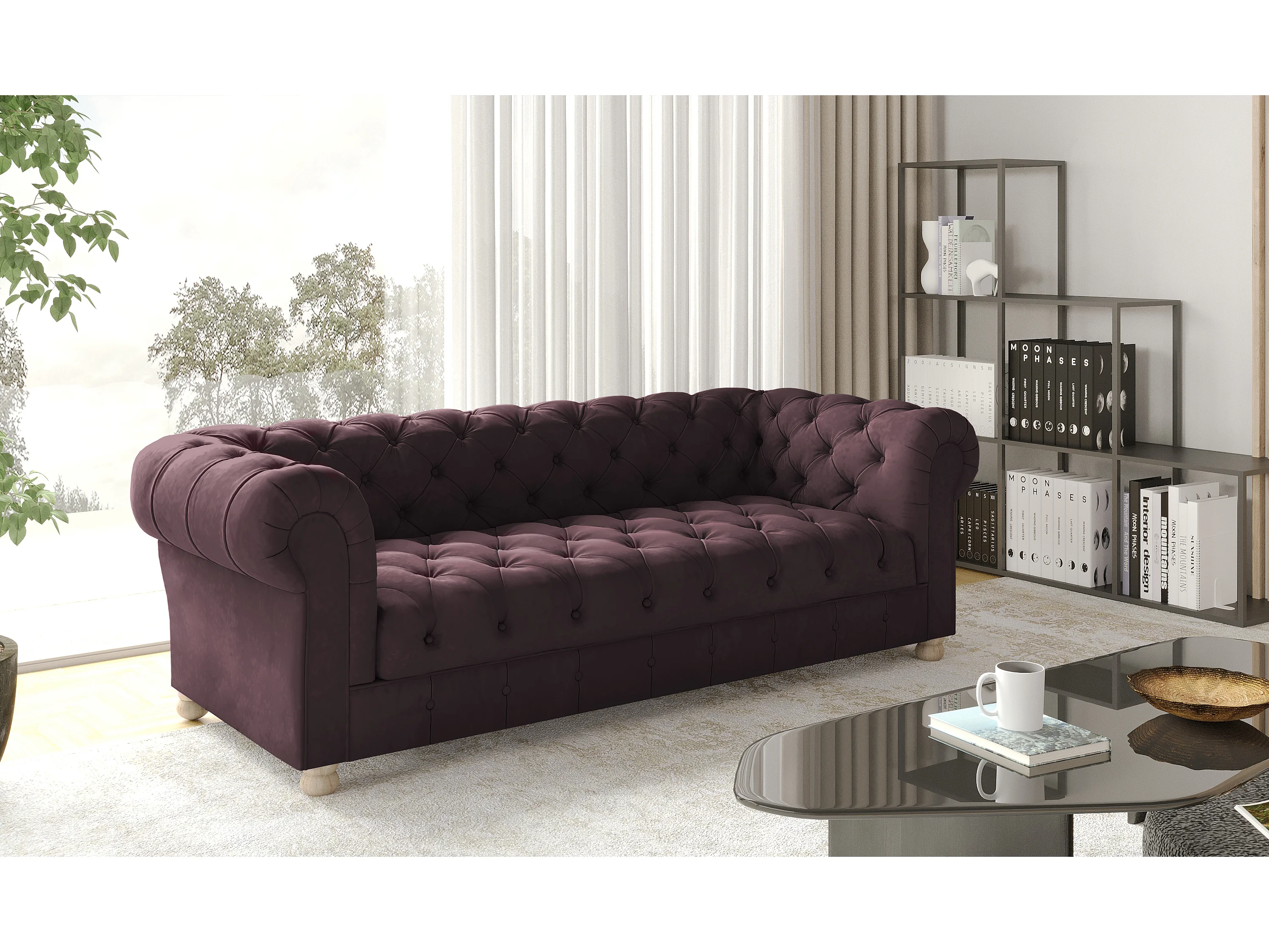 CHESTERFIELD driezitsbank, Whisper-stof, rode wijn