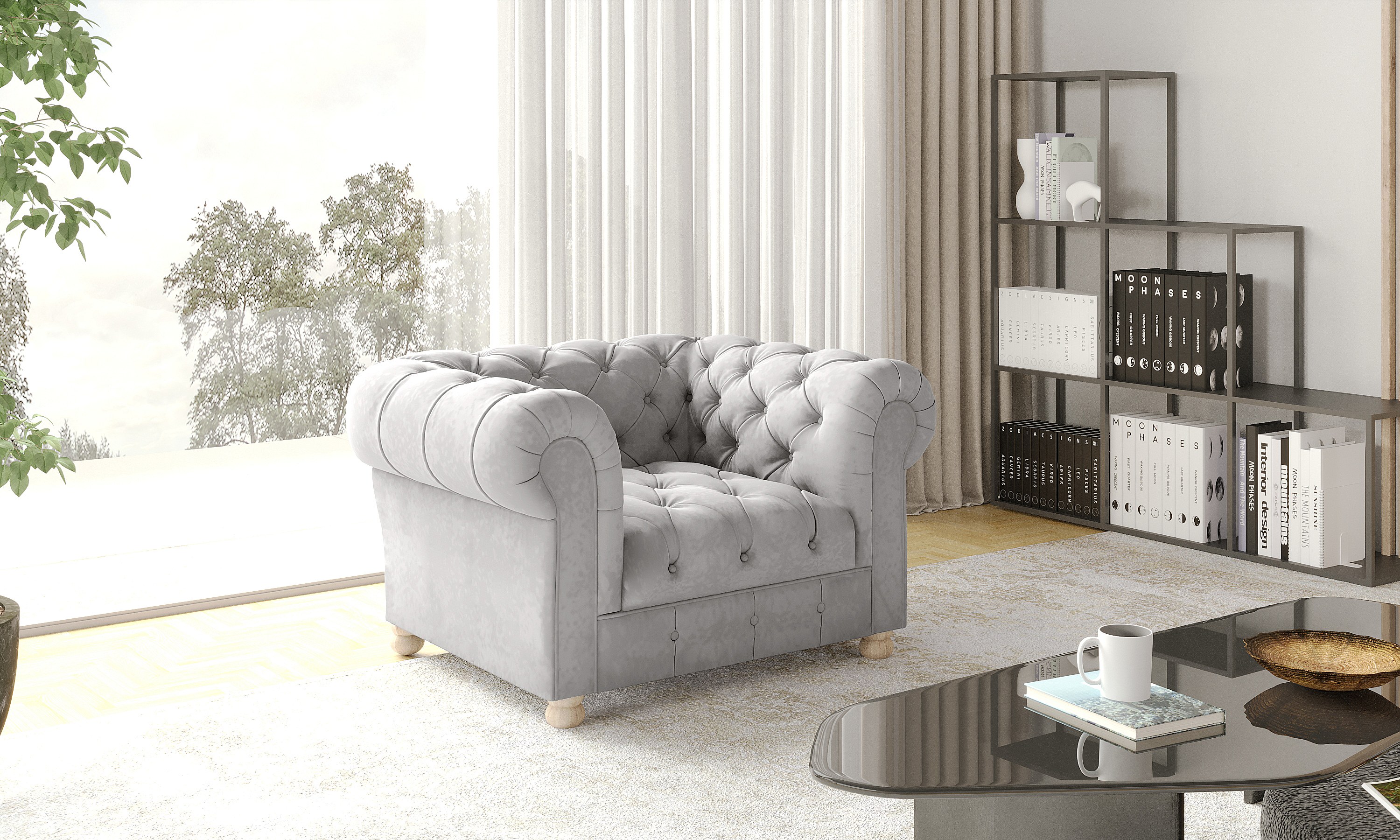 CHESTERFIELD fauteuil, Whisper stof, zilver