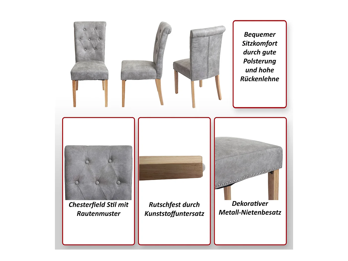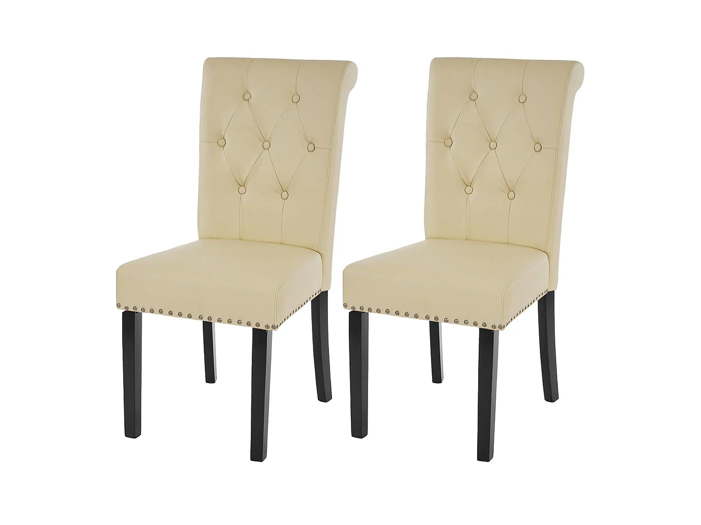 Eetkamerstoel Chesterfield Il (set van 2), kunstleer, crème, donkere poten