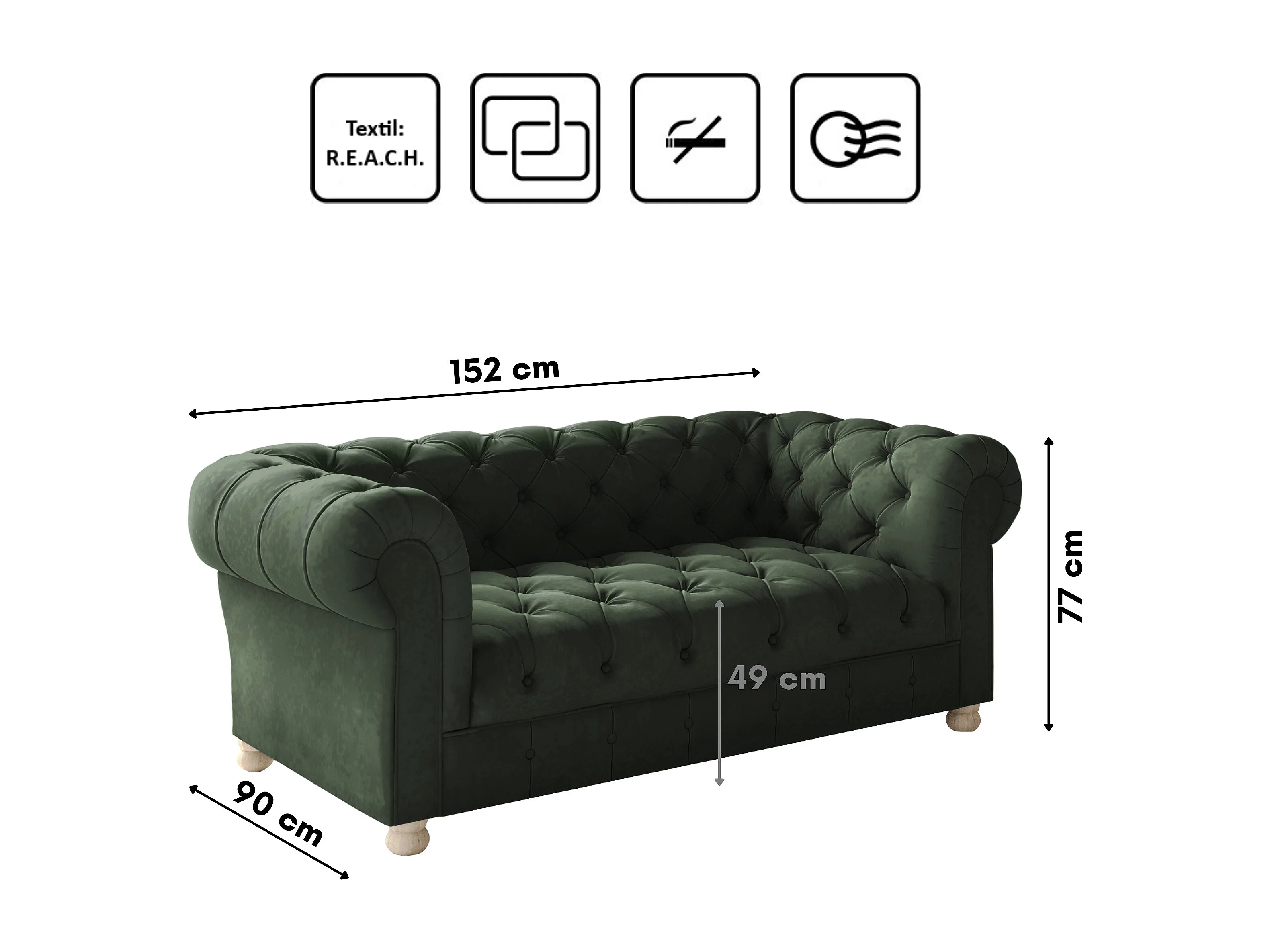 CHESTERFIELD tweezitsbank, Whisper-stof, groen