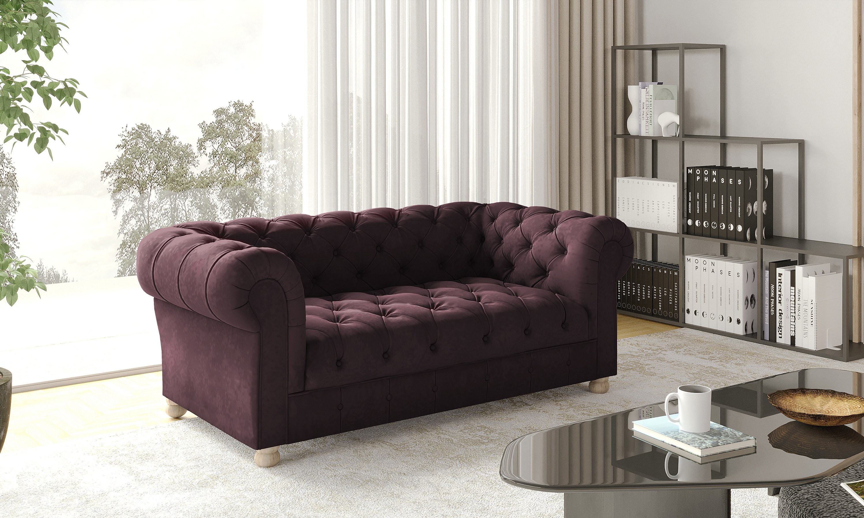 CHESTERFIELD tweezitsbank, Whisper-stof, rode wijn