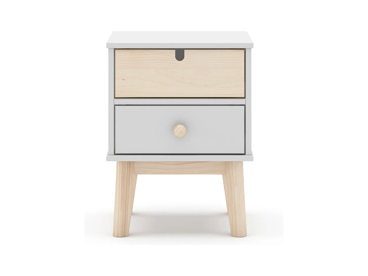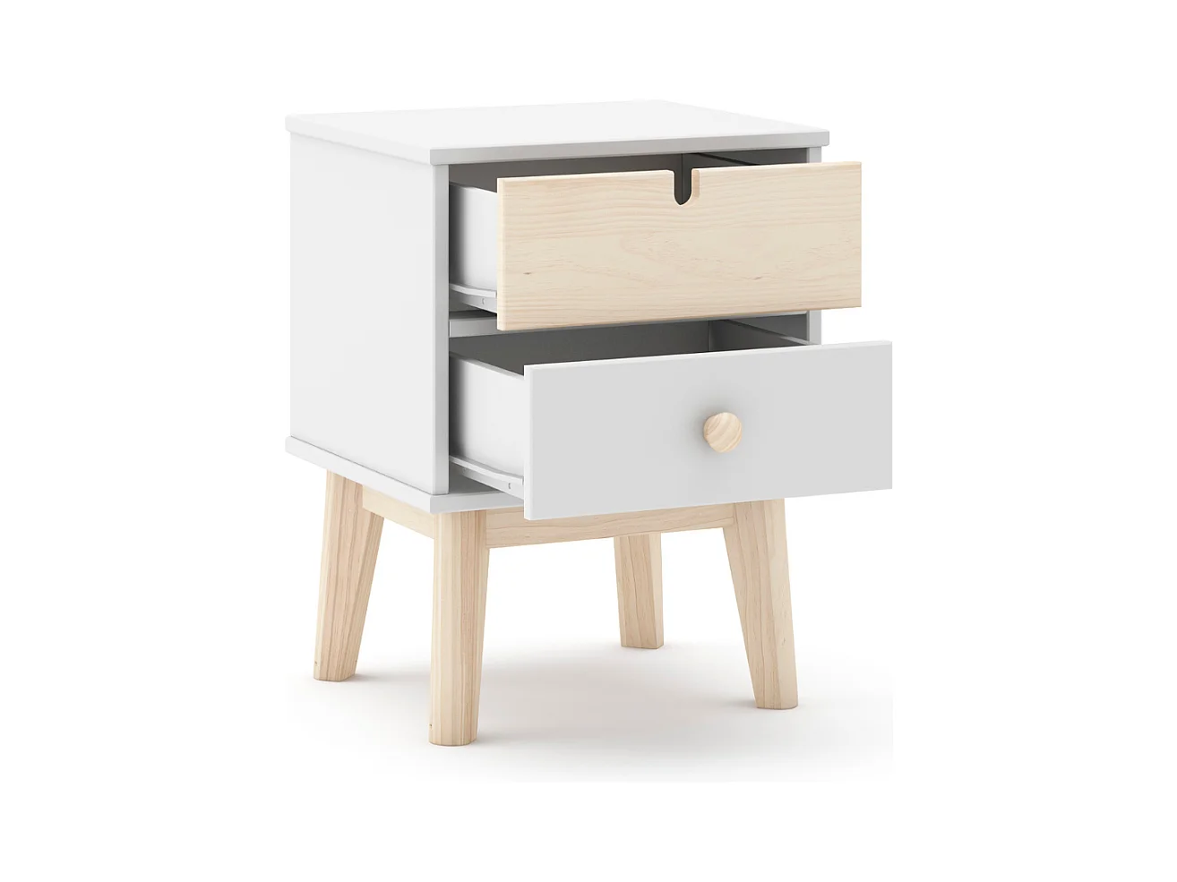 Nachtkastje Miranda met 2 laden Wit, Gelakt MDF, Houten poten
