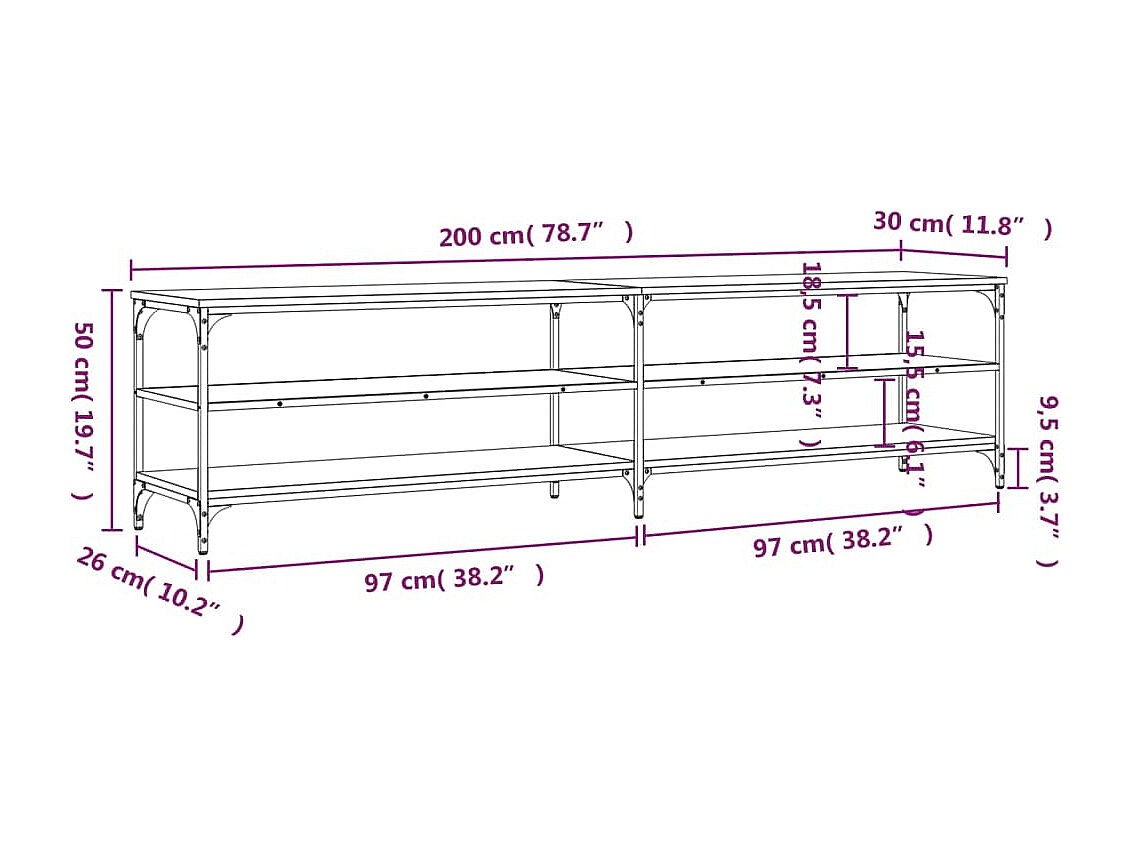 Chiloquin Tv-meubel 200x30x50 cm bewerkt hout metaal sonoma eikenkleurig