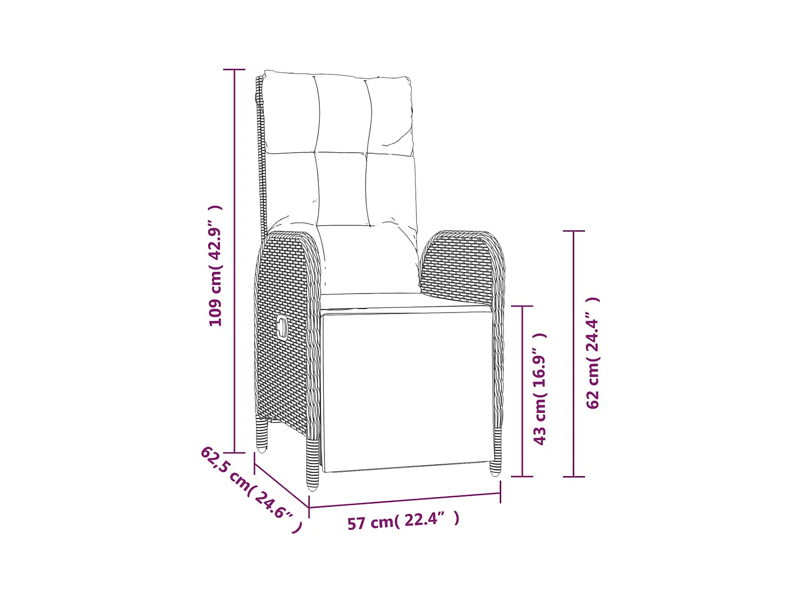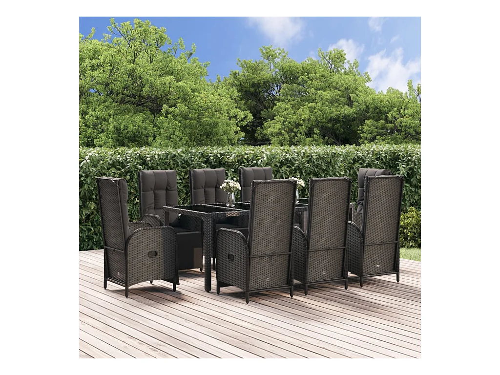 Cisternino 9-delige Tuinset met kussens poly rattan zwart en grijs