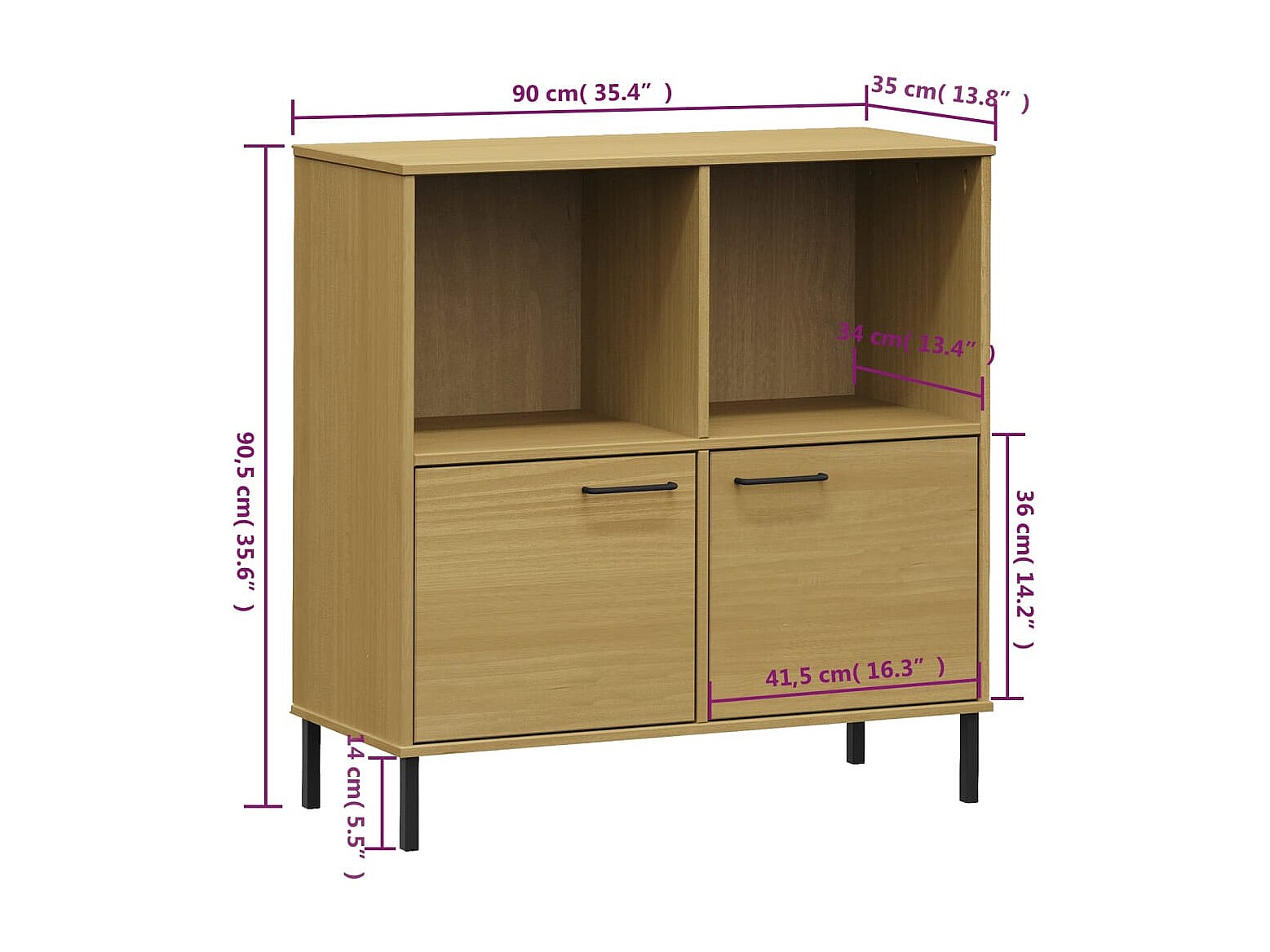 Claire-Madeleine-Claire Boekenkast met metalen poten OSLO 90x35x90,5 cm hout bruin