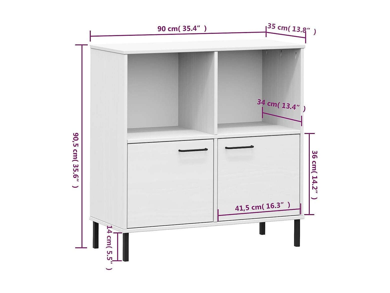 Claire-Madeleine-Claire Boekenkast met metalen poten OSLO 90x35x90,5 cm hout wit