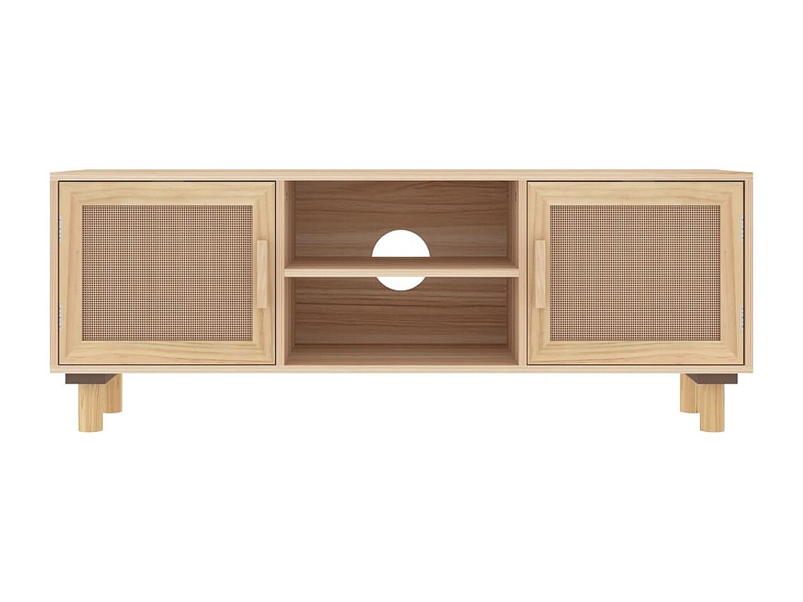 Claudia Tv-meubel 105x30x40 cm massief grenenhout en rattan bruin