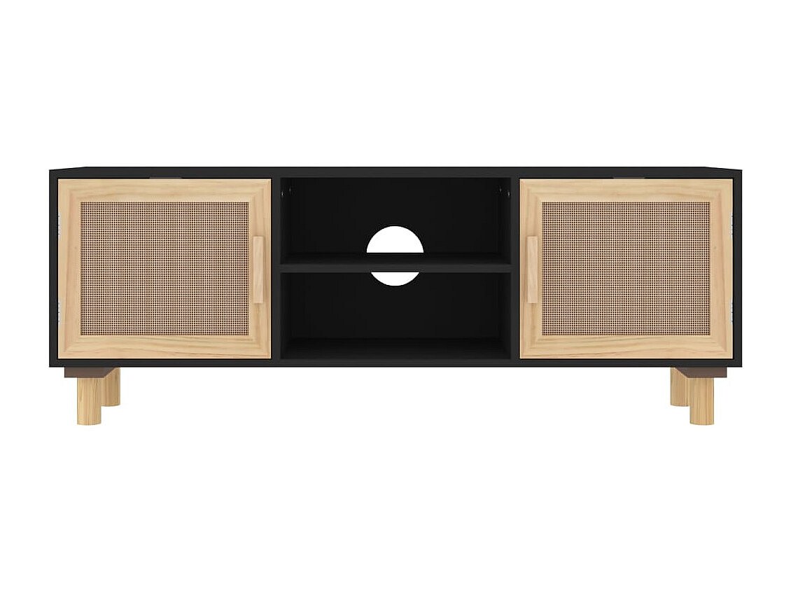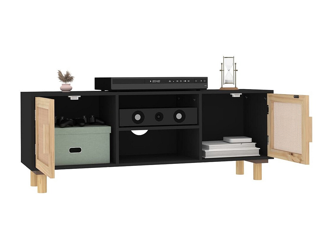 Claudia Tv-meubel 105x30x40 cm massief grenenhout en rattan zwart