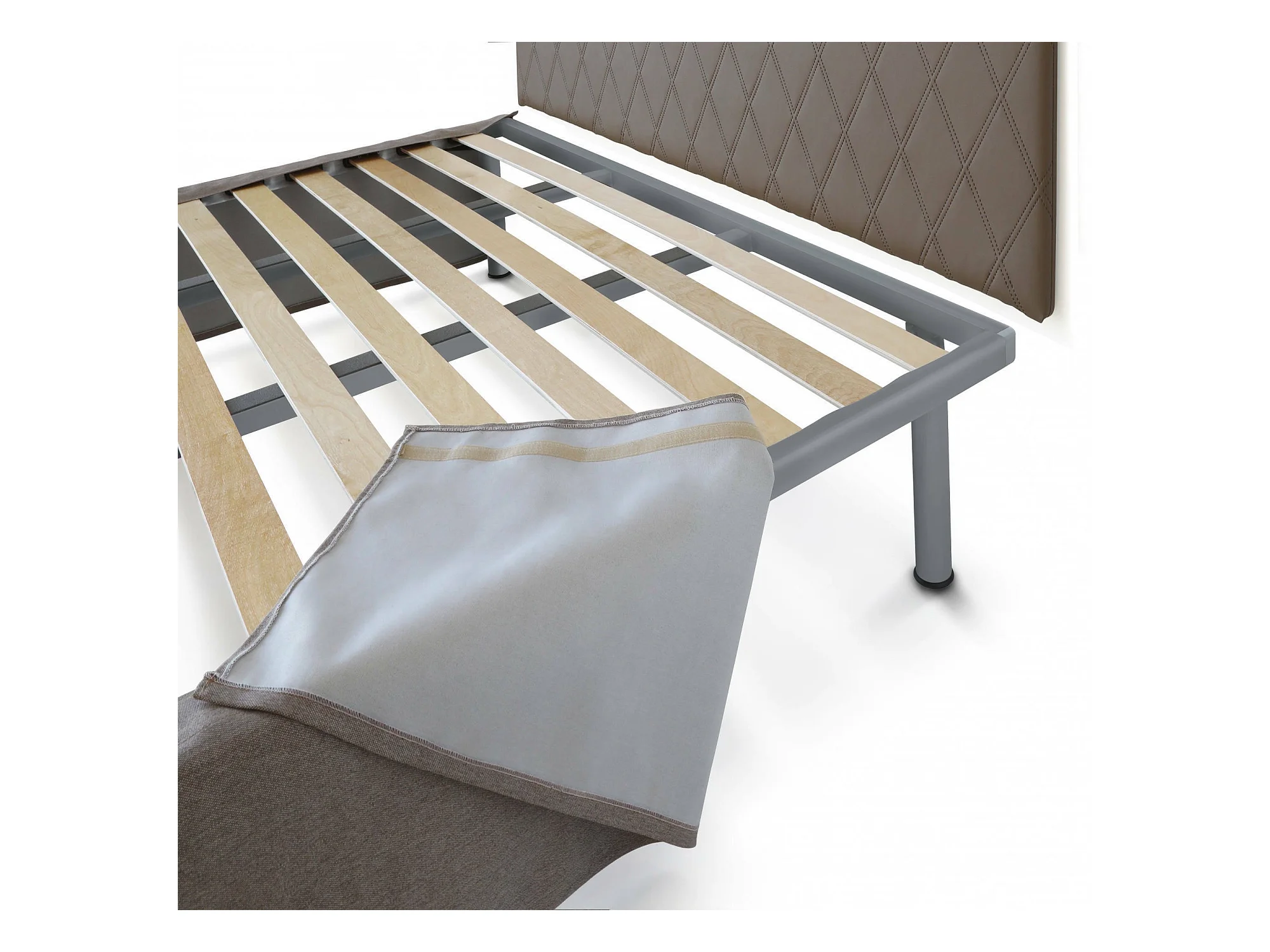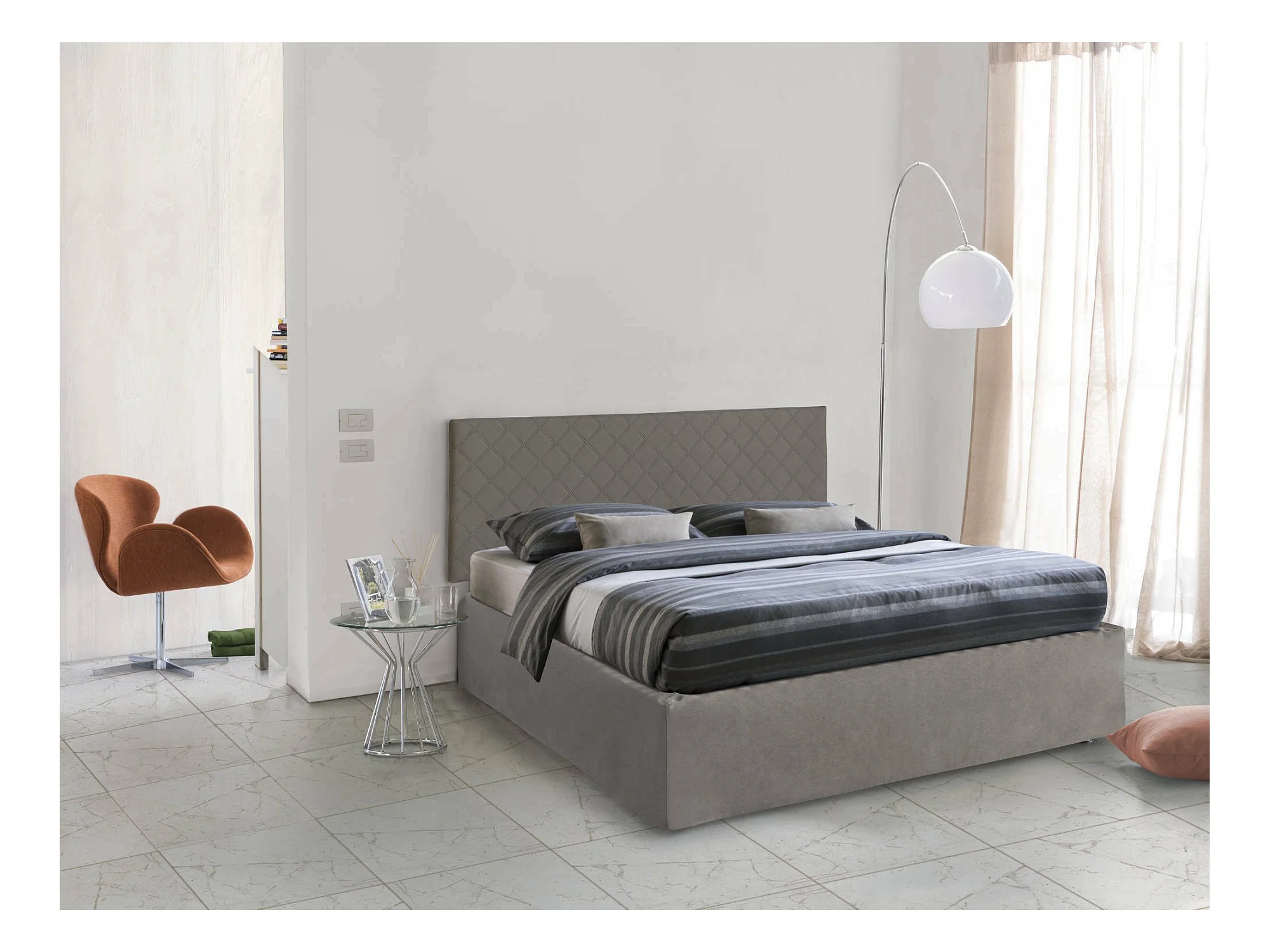 Clementina tweepersoonsbed, eco-lederen hoofdbordset met orthopedische bodem en volant, 100% Made in Italy, geschikt voor een matras van 160x190 cm, duifgrijs