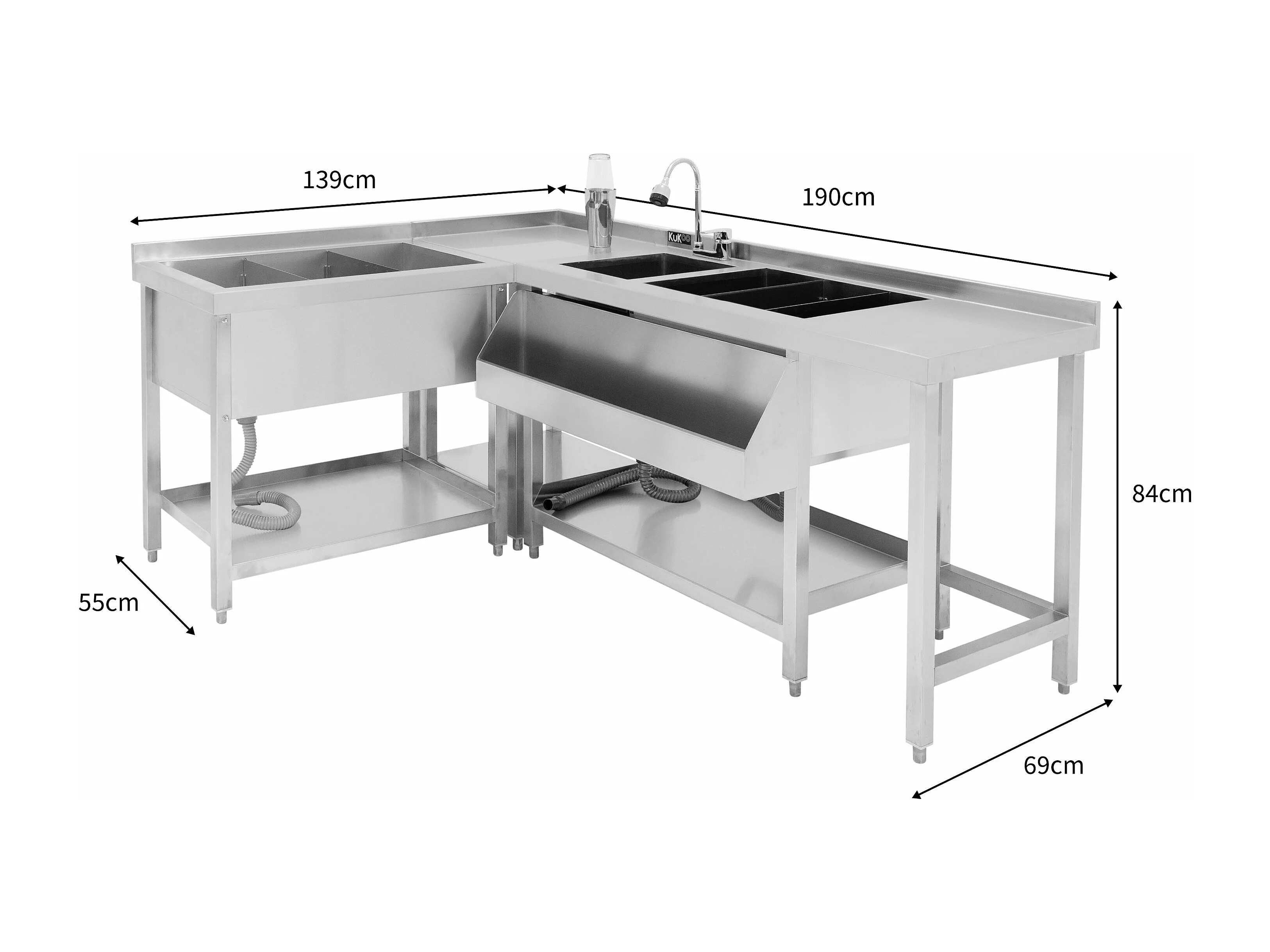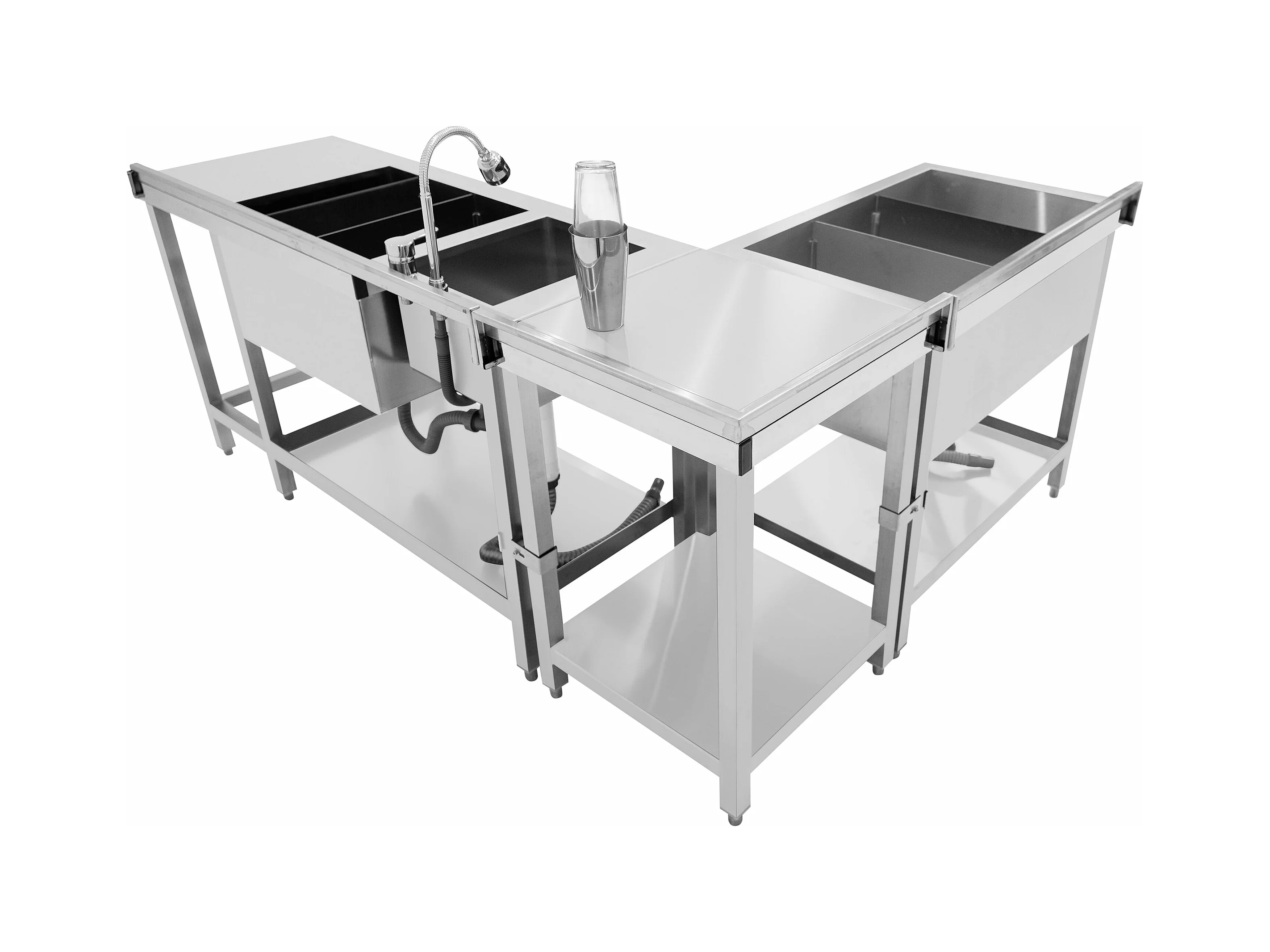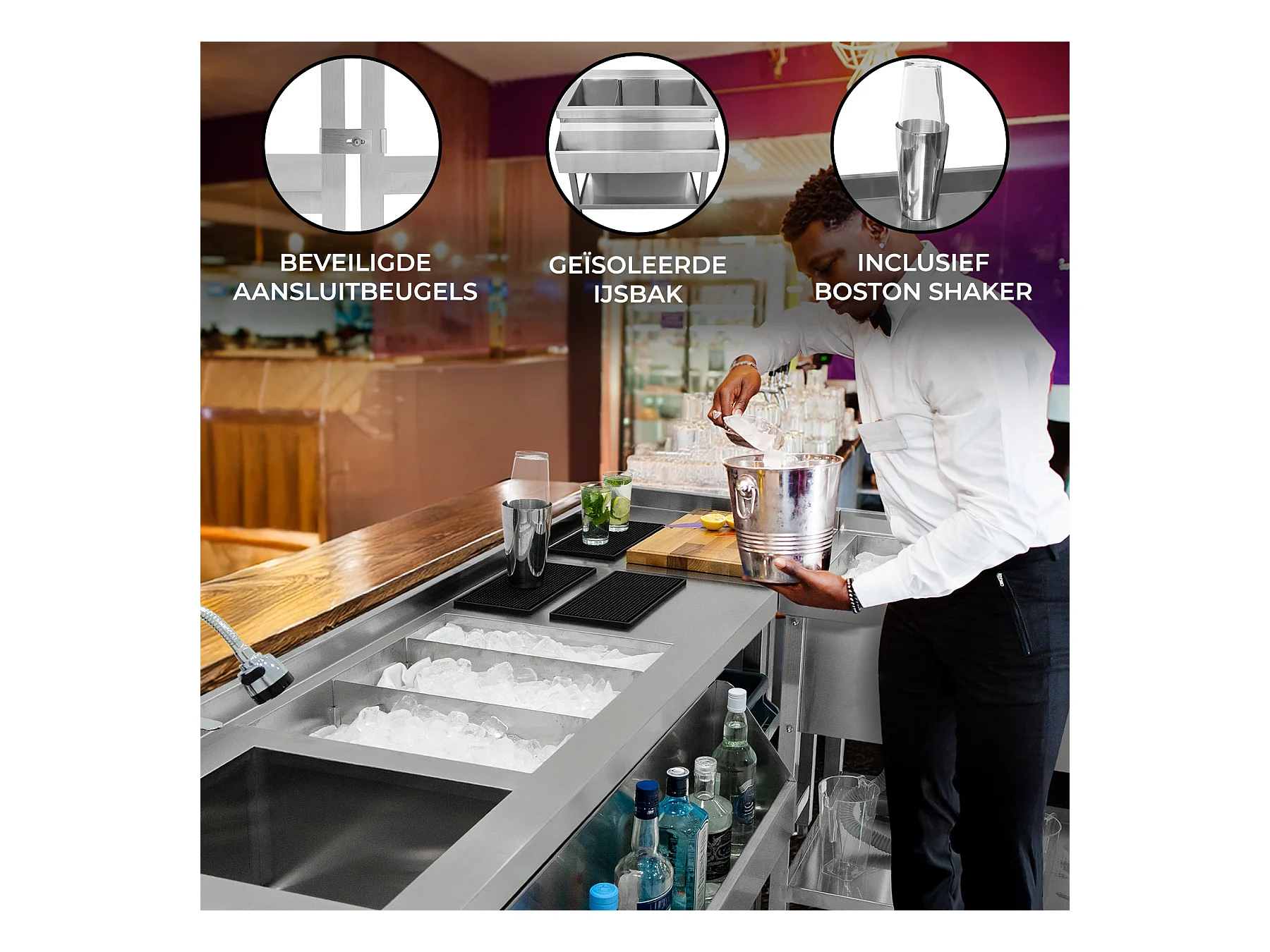 Cocktail Bar Station Ijsbak & Modulaire Hoekeenheid Roestvrij Staal Werkstation