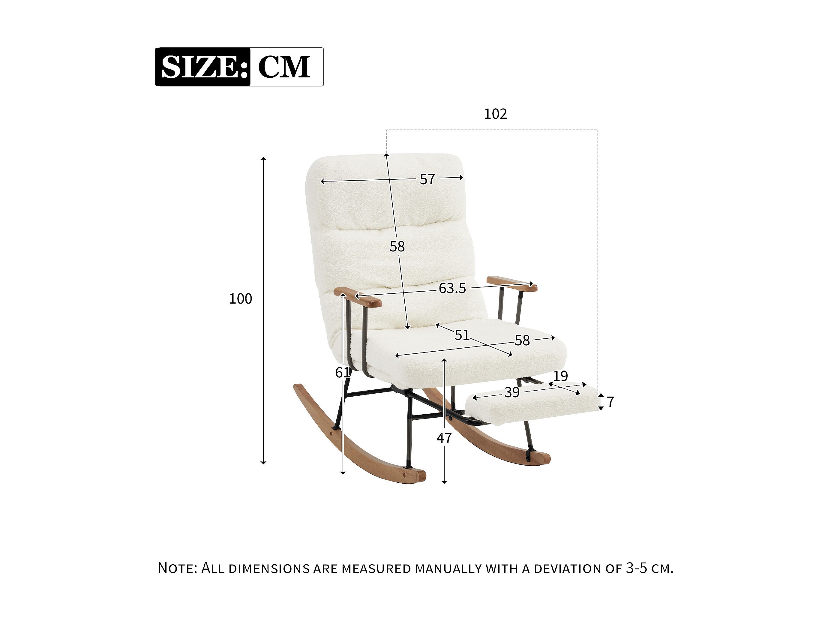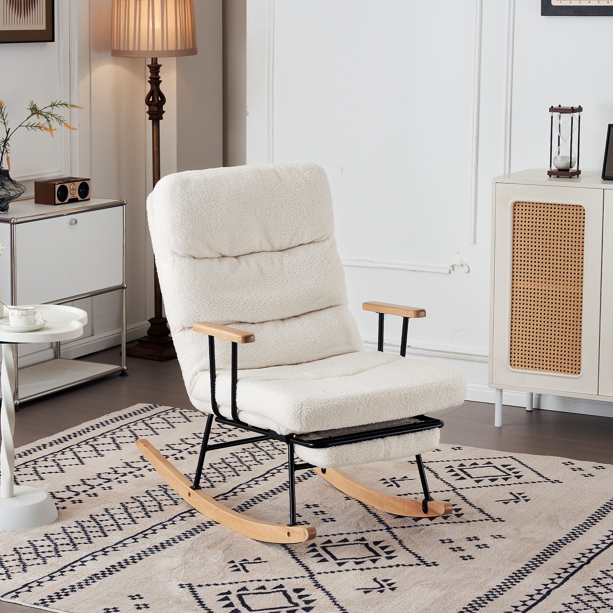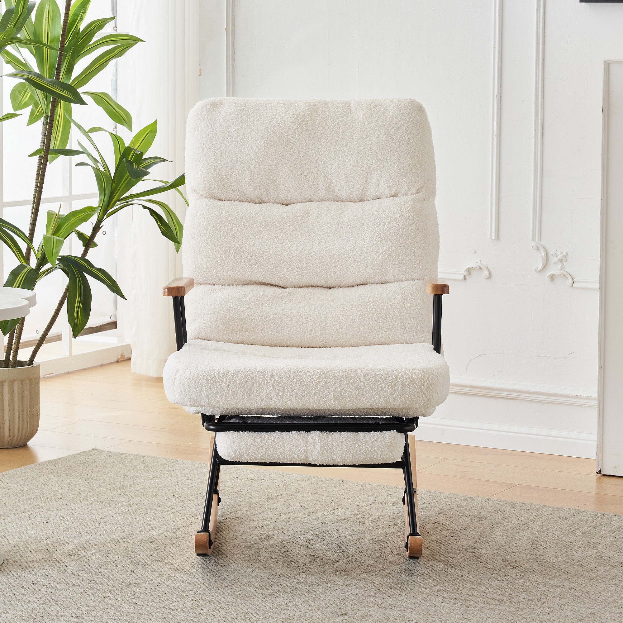Comfortabele schommelstoel met zwaartekrachtmechanisme en handmatige voetsteun, wit