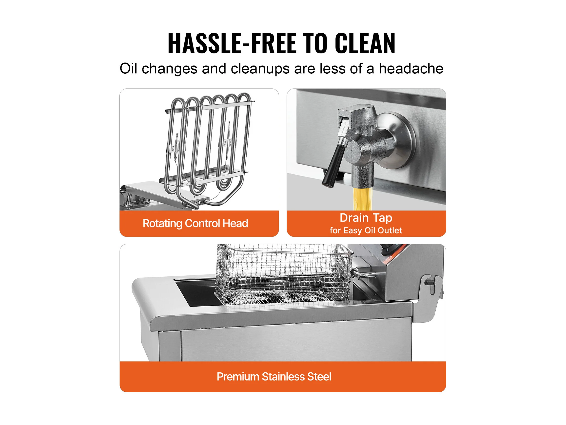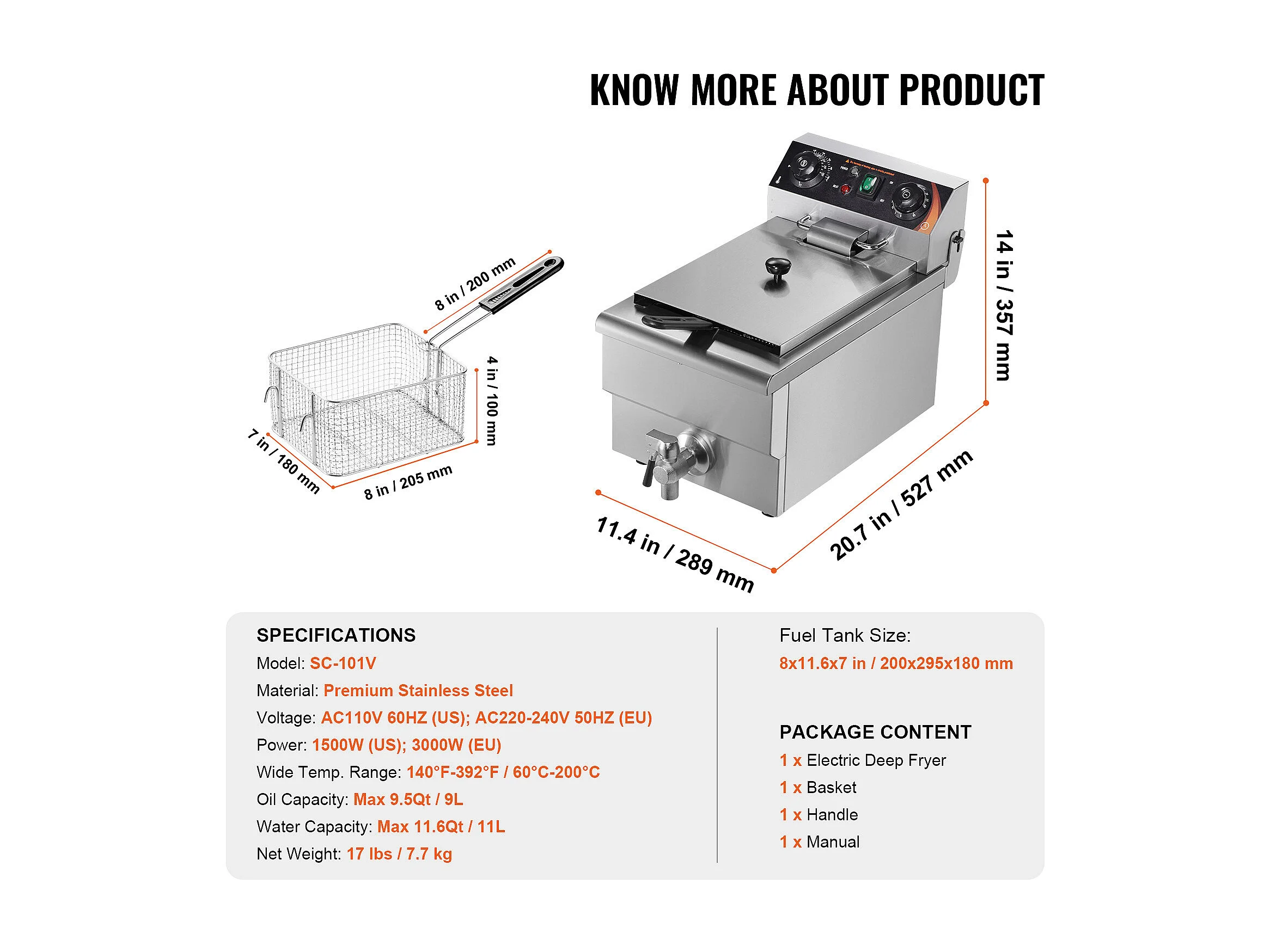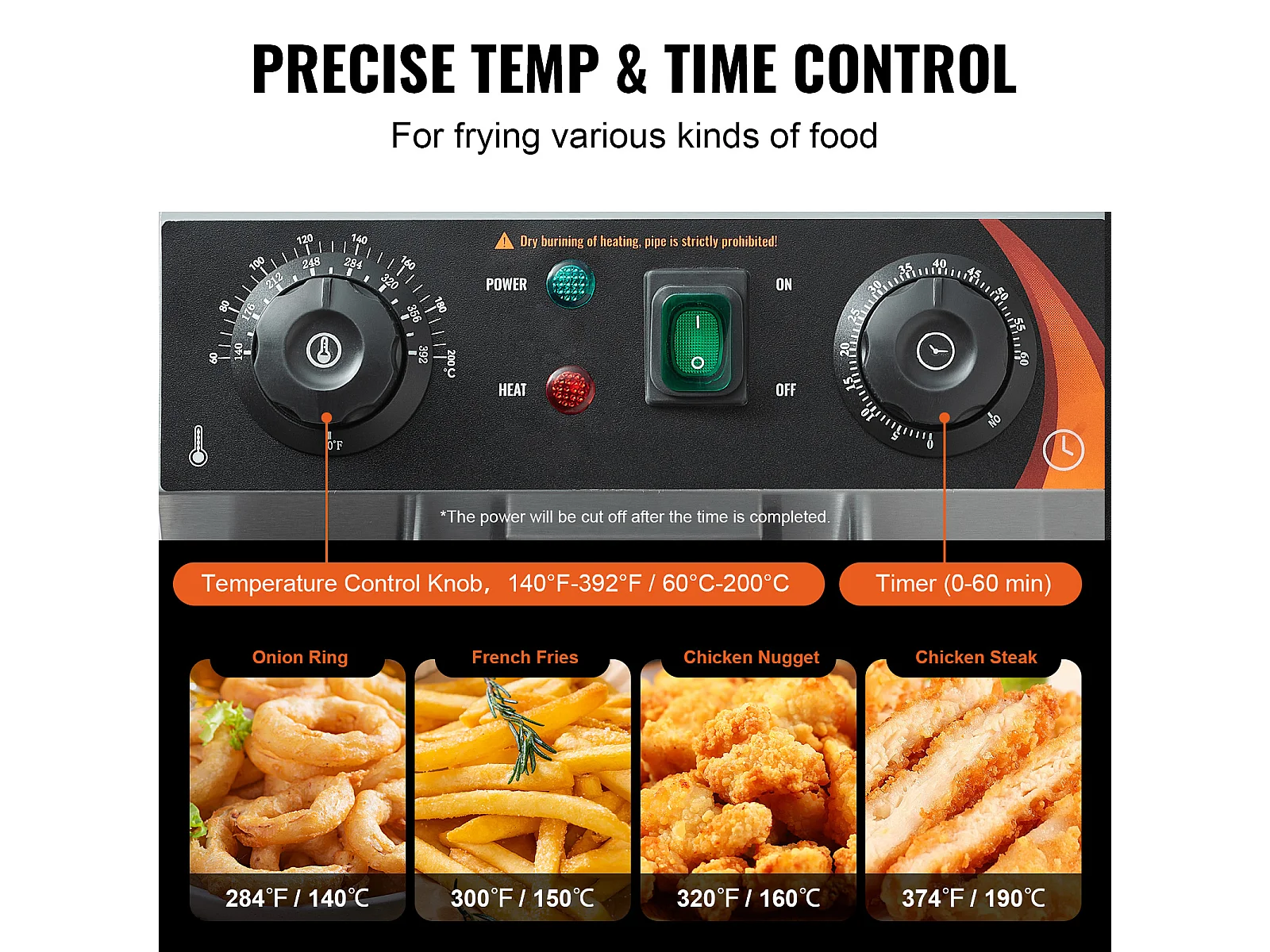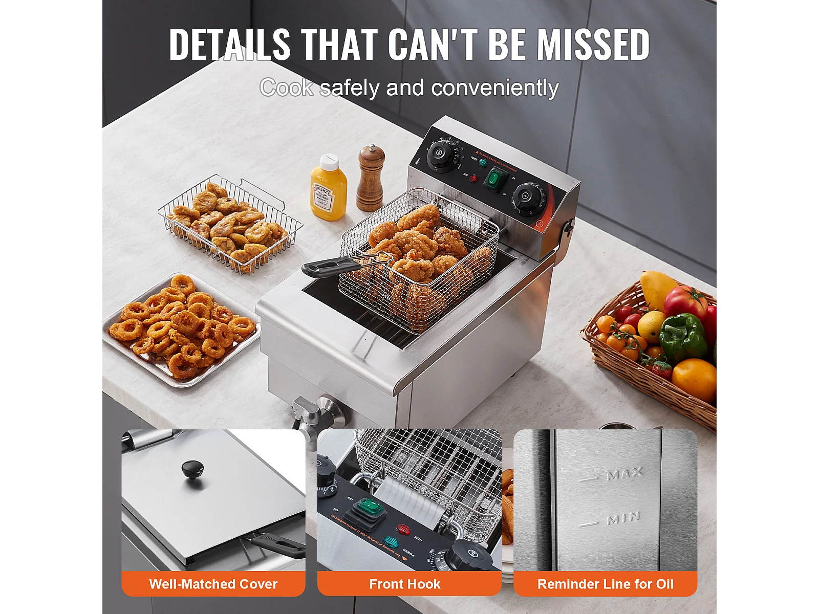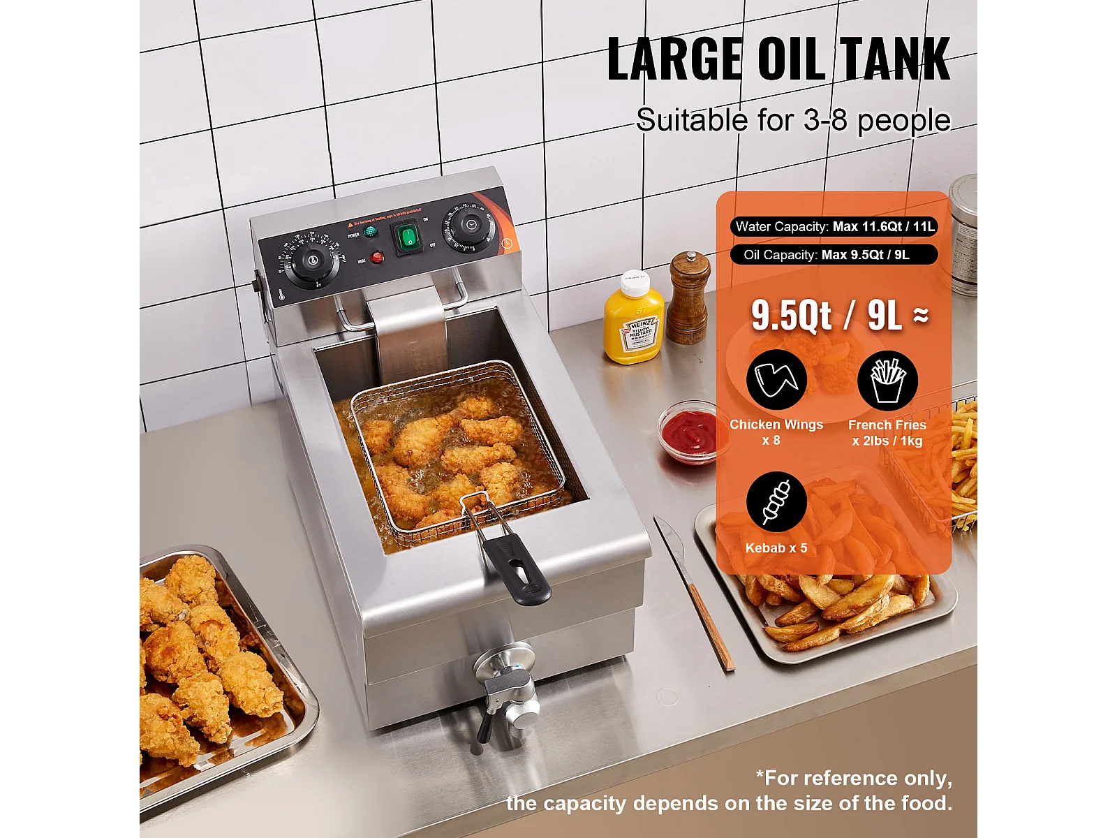 Commerciële Elektrische Friteuse SucceBuy 3000 W 9 L van Roestvrij Staal Verbeterd tot 200°C