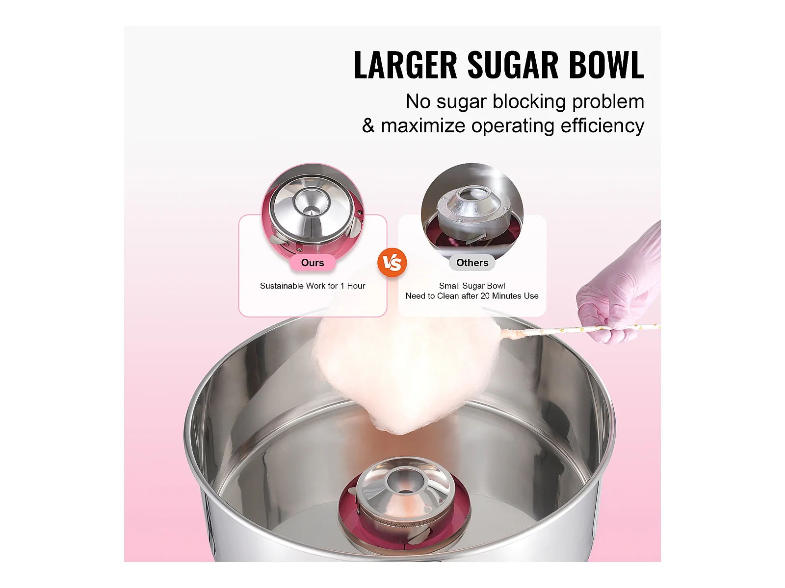 Suikerspinmachine SucceBuy, Elektrisch 1000 W, Commercieel, Roestvrijstalen Kom 52 cm, Lepel/Lade, Verjaardag/Feest, Roze