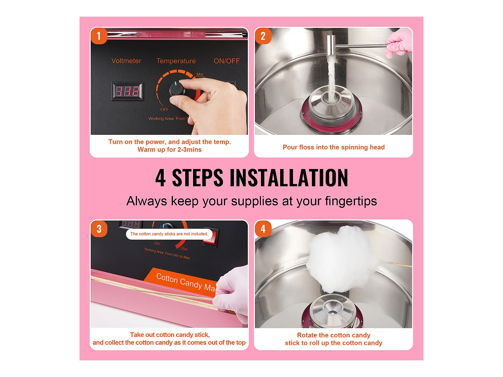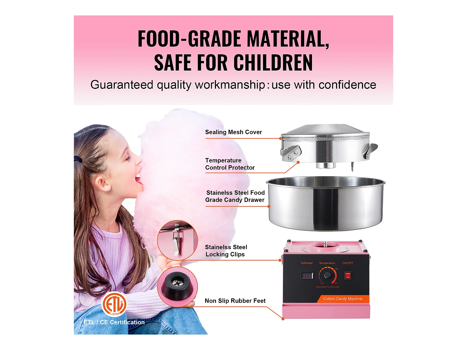 Commerciële Suikerspinmachine SucceBuy, Suikerspinmachine 1000 W, voor Thuis, Kinderverjaardag, Familiefeest, Roze