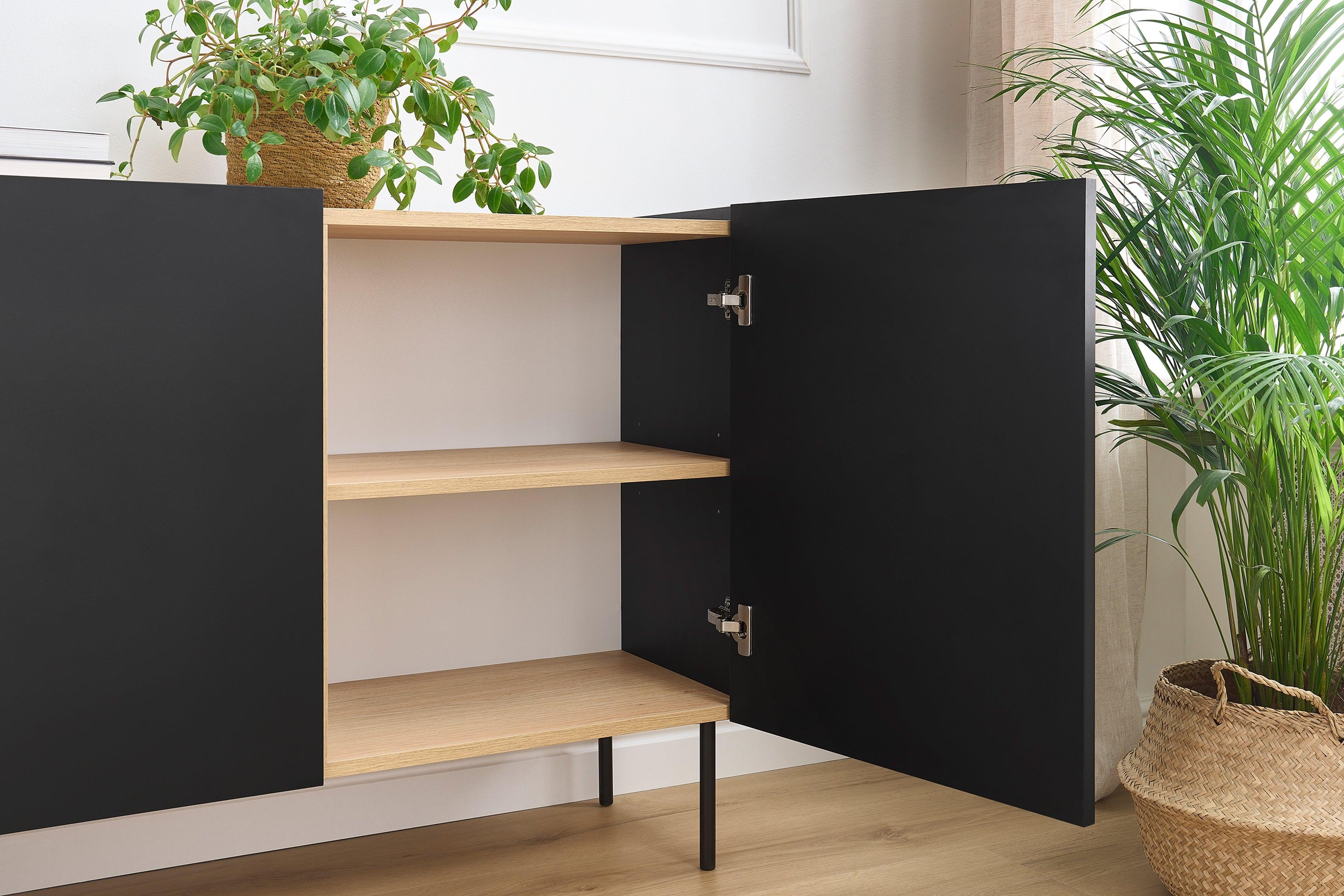 Dressoir 2 deuren 3 laden met metalen voet 160x85 cm