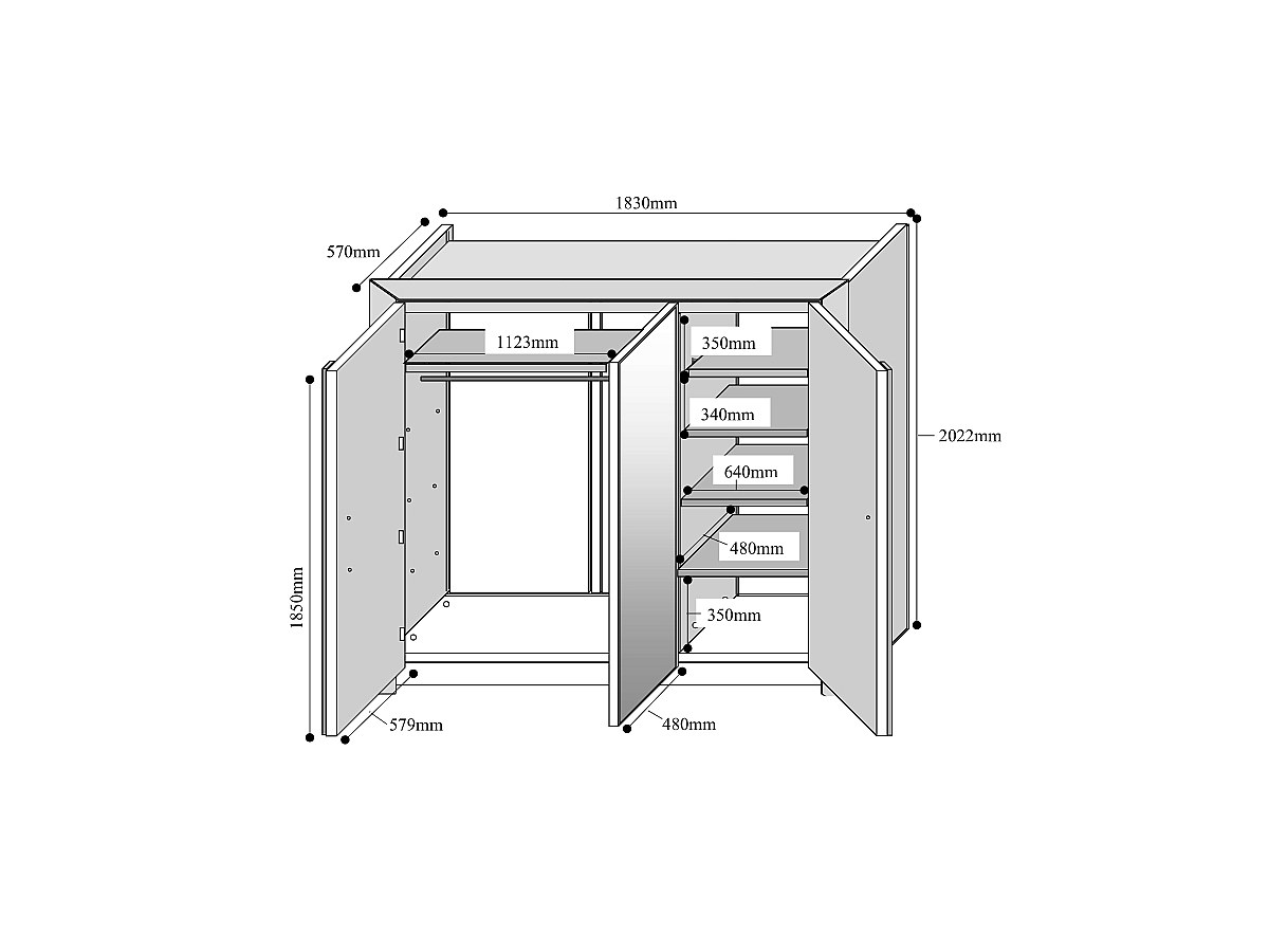 Afmetingen: L183 x D57 x H202 cm