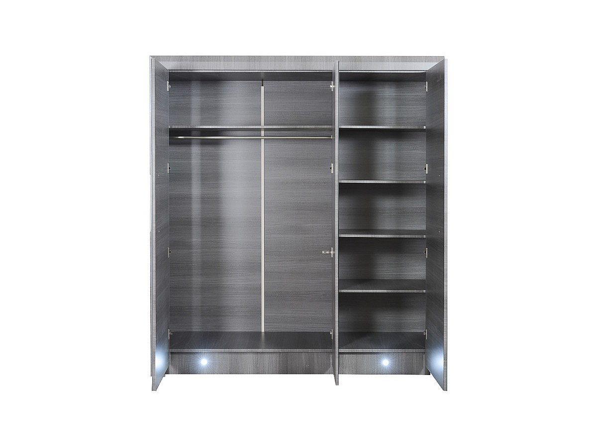 Kledingkast met spiegel BRITANY - L183 cm - MDF met grijs iepenhouteffect