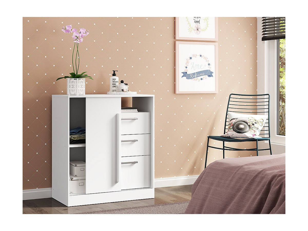 Commode DEVY - 1 nis, 1 deur en 3 laden - Wit
