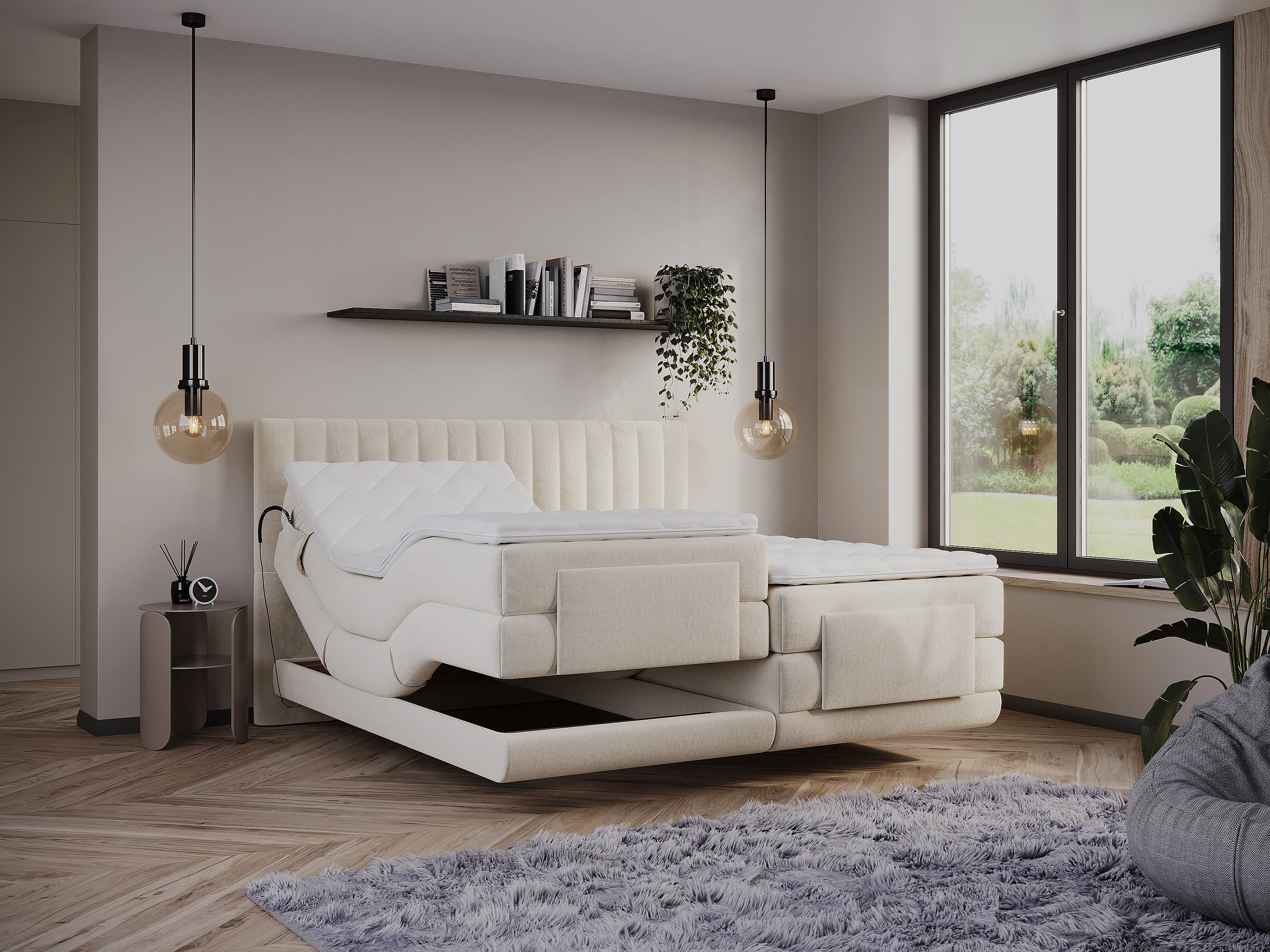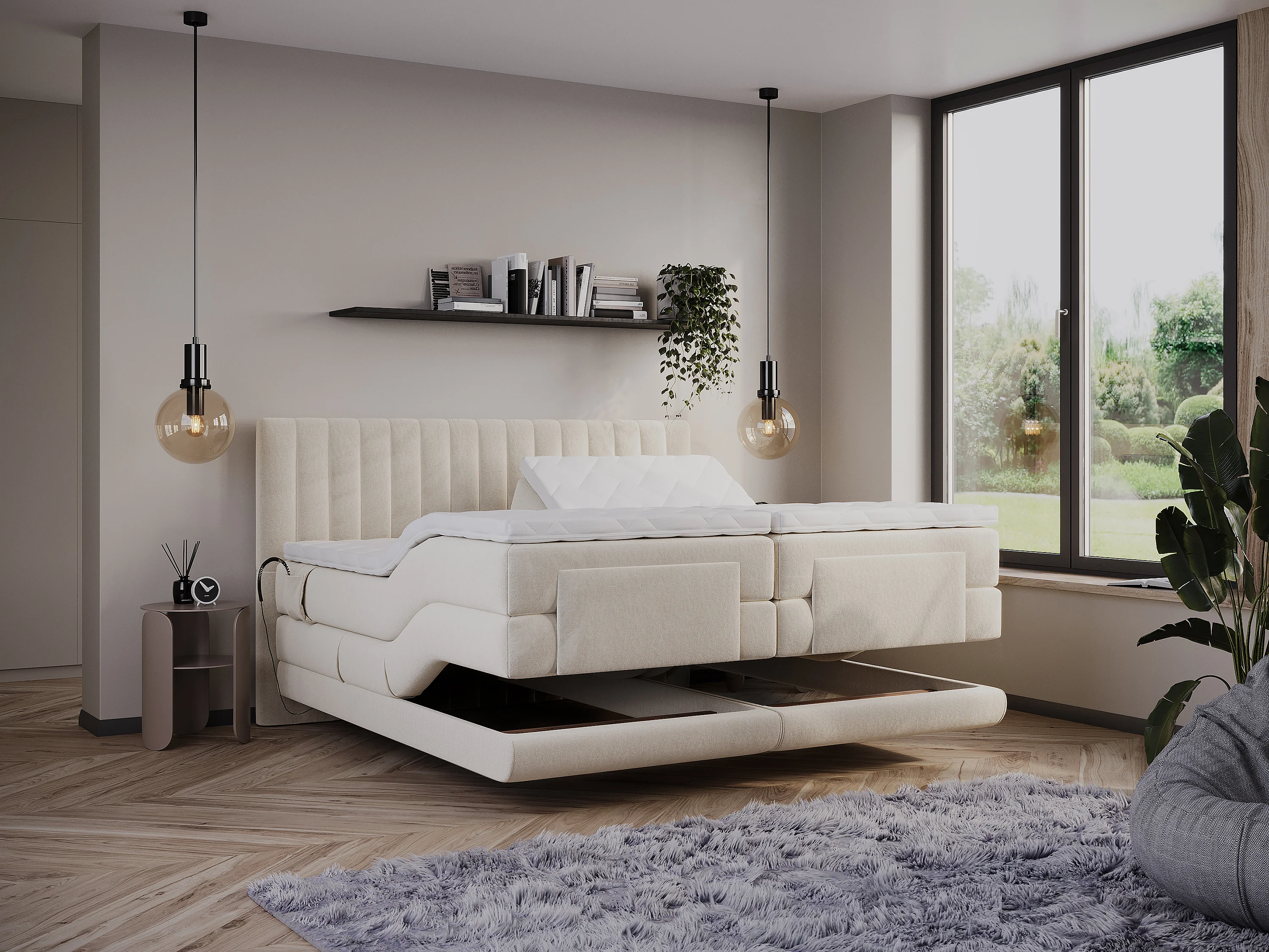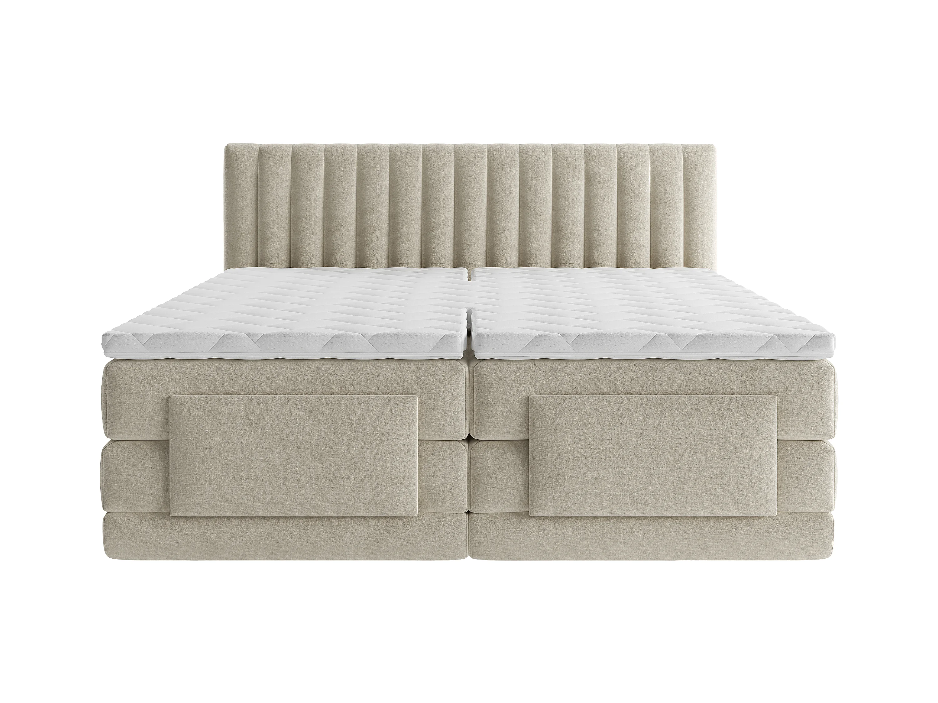 Complete set boxspringbed met hoofdbord met verticale stiksels + elektrische relaxbedbodems + matras + dekmatras - 2 x 80 x 200 cm - Velours - Beige - DONSI van PALACIO