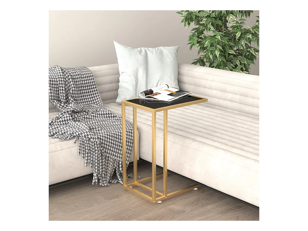 Computer bijzettafel 50x35x65 cm gehard glas zwart