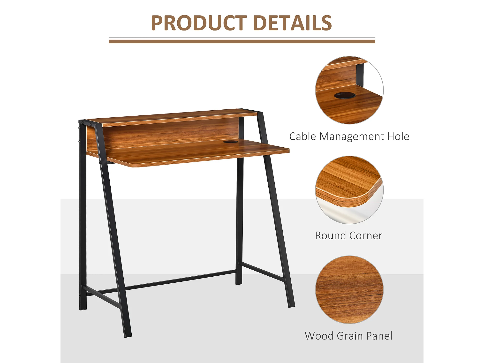 Computerbureau met opbergruimte en kabelmanagement, metaal, notenhout (84x45x85 cm)