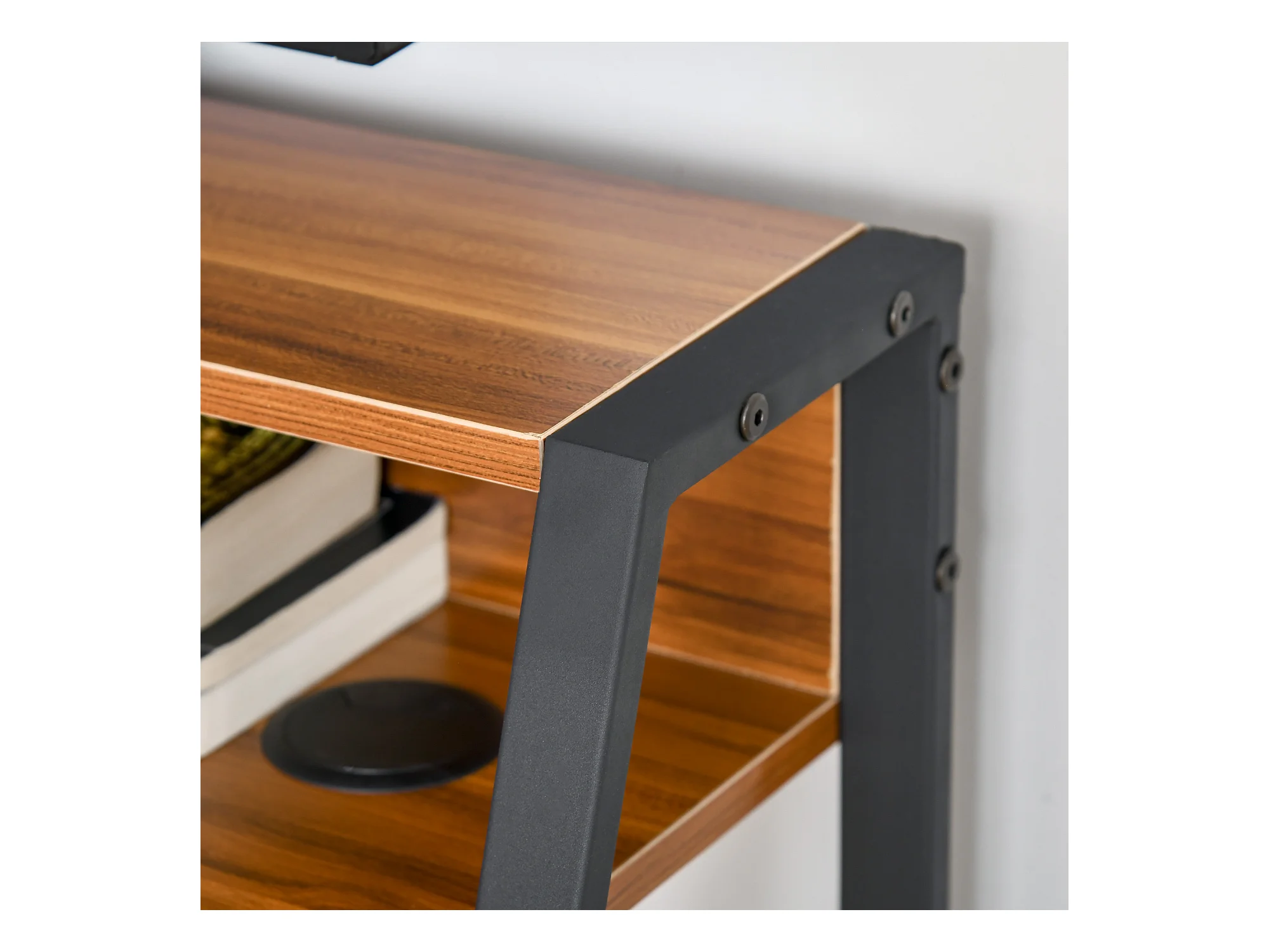 Computerbureau met opbergplanken, metalen structuur, eikenhouten afwerking (100x54x75 cm)