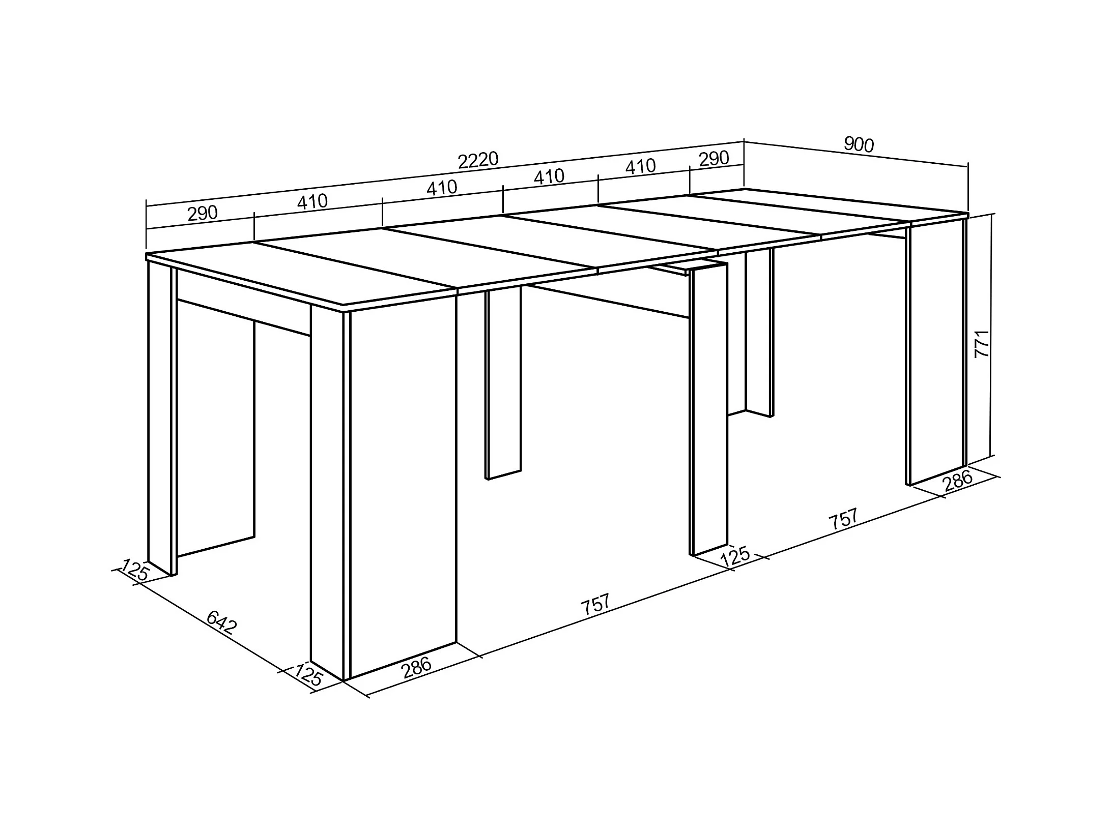 Uitschuifbare Consoletafel, 222x90x77cm, Voor 10 personen, Tafel, Eiken