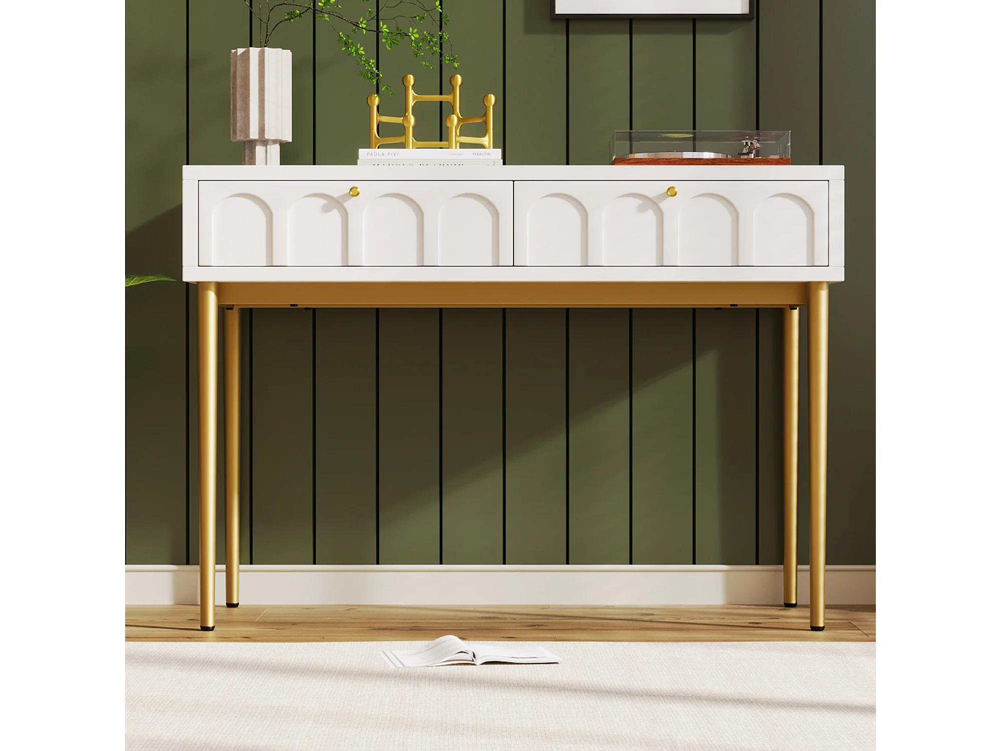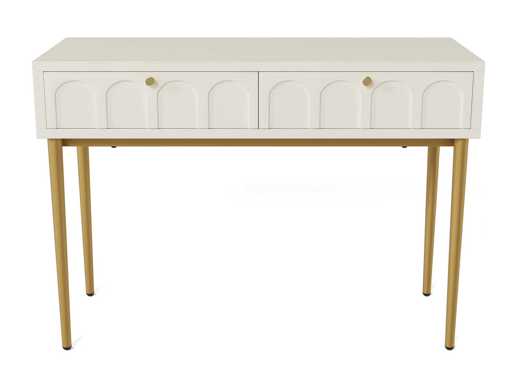 Console met 2 lades - Melkwit en goud - Hout en metaal