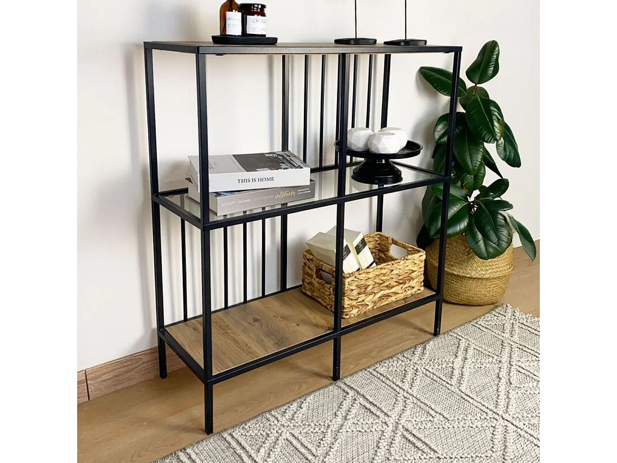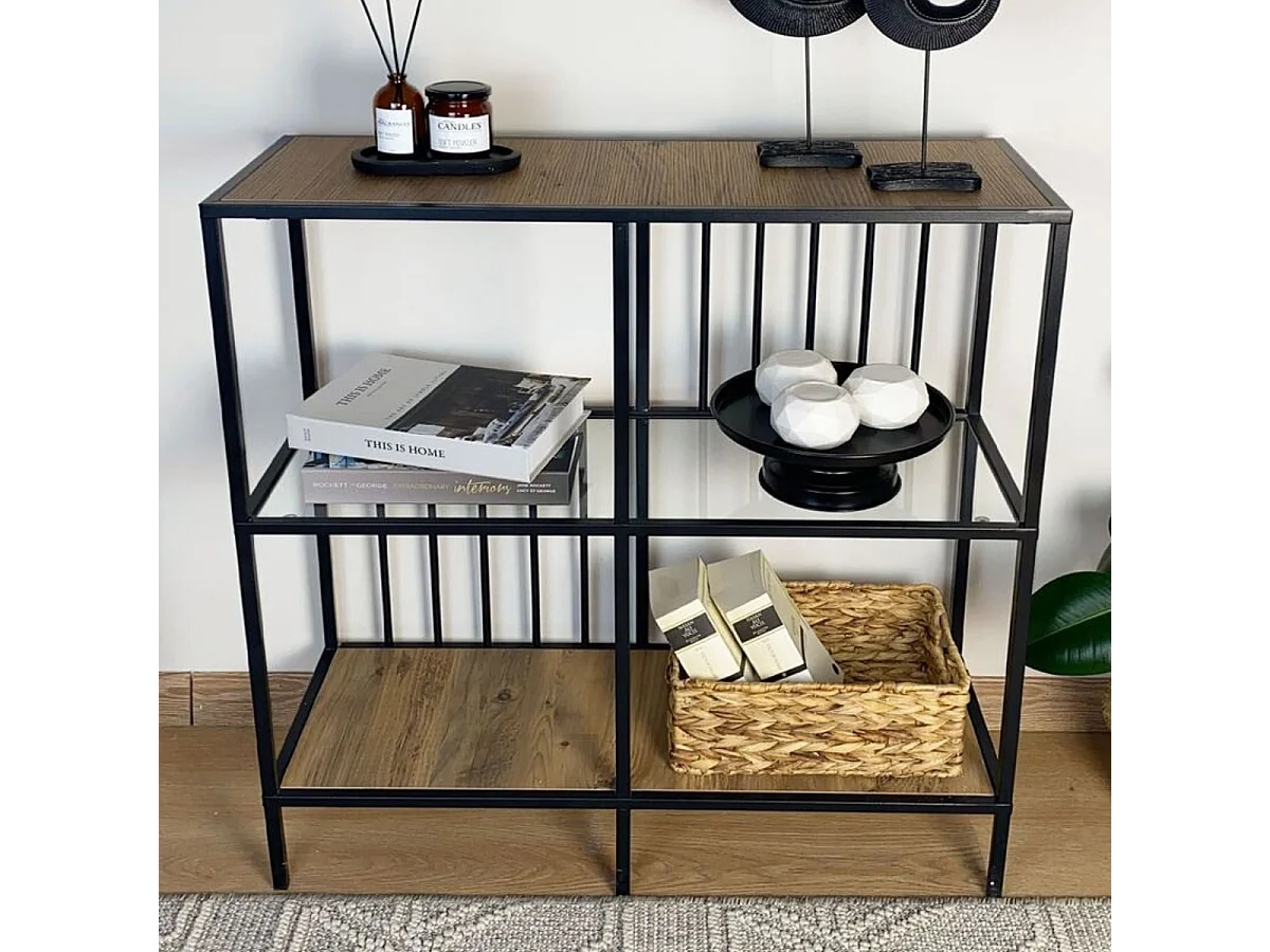 Console met 4 vakken van zwart metaal en rookglas H90 cm - SUNNY