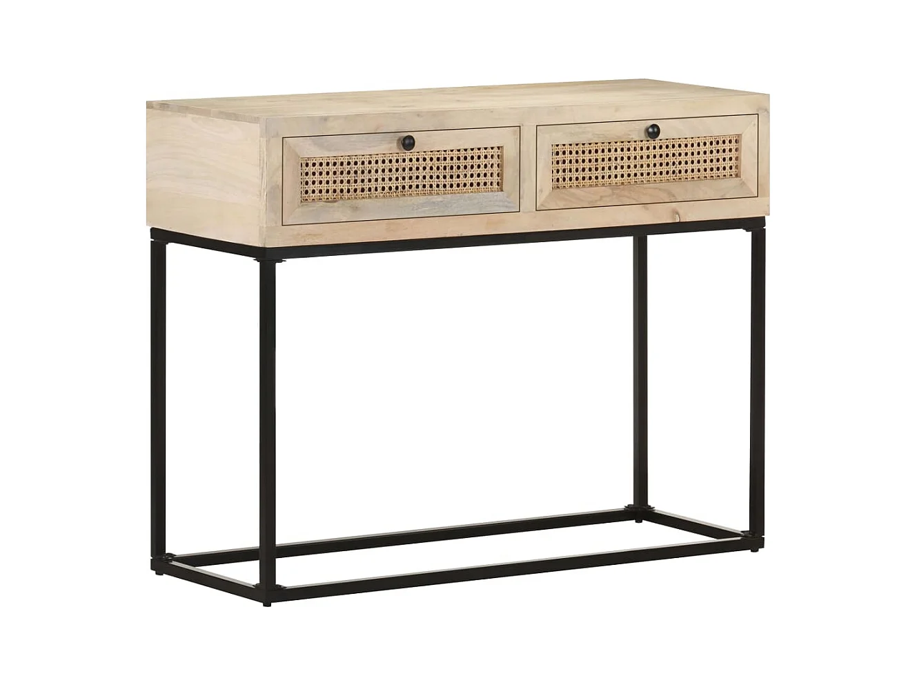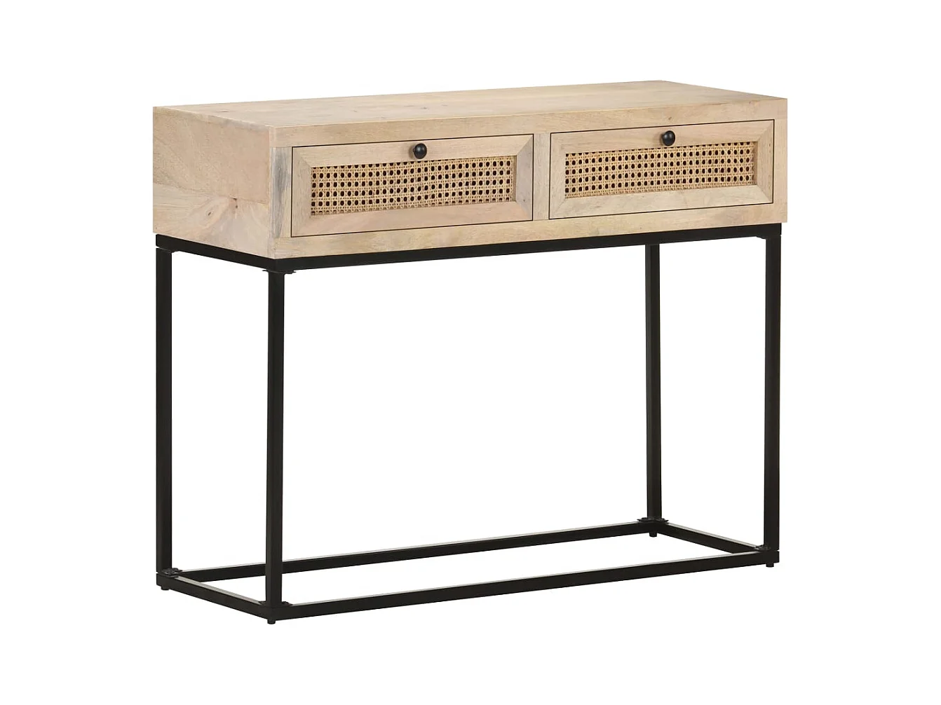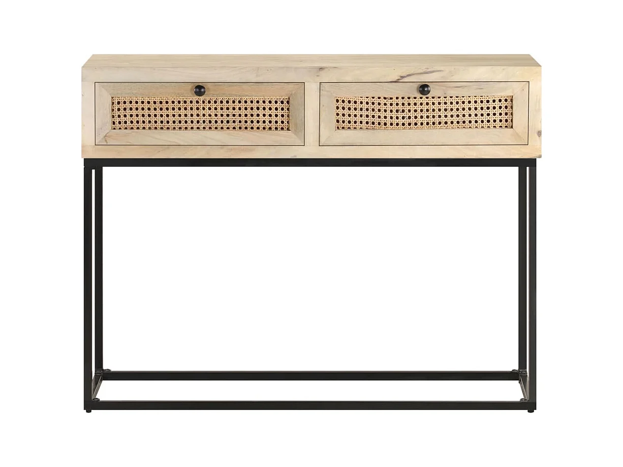 Consoletafel 100x35x76 cm Mangohout en natuurlijk riet
