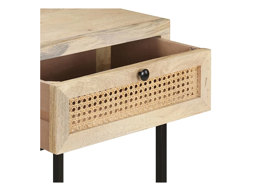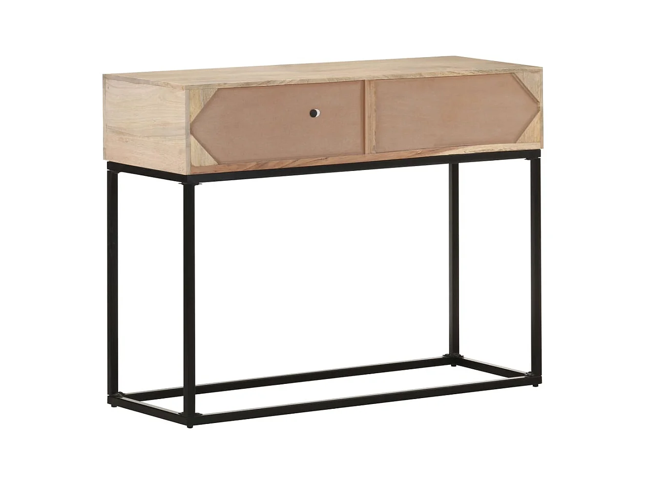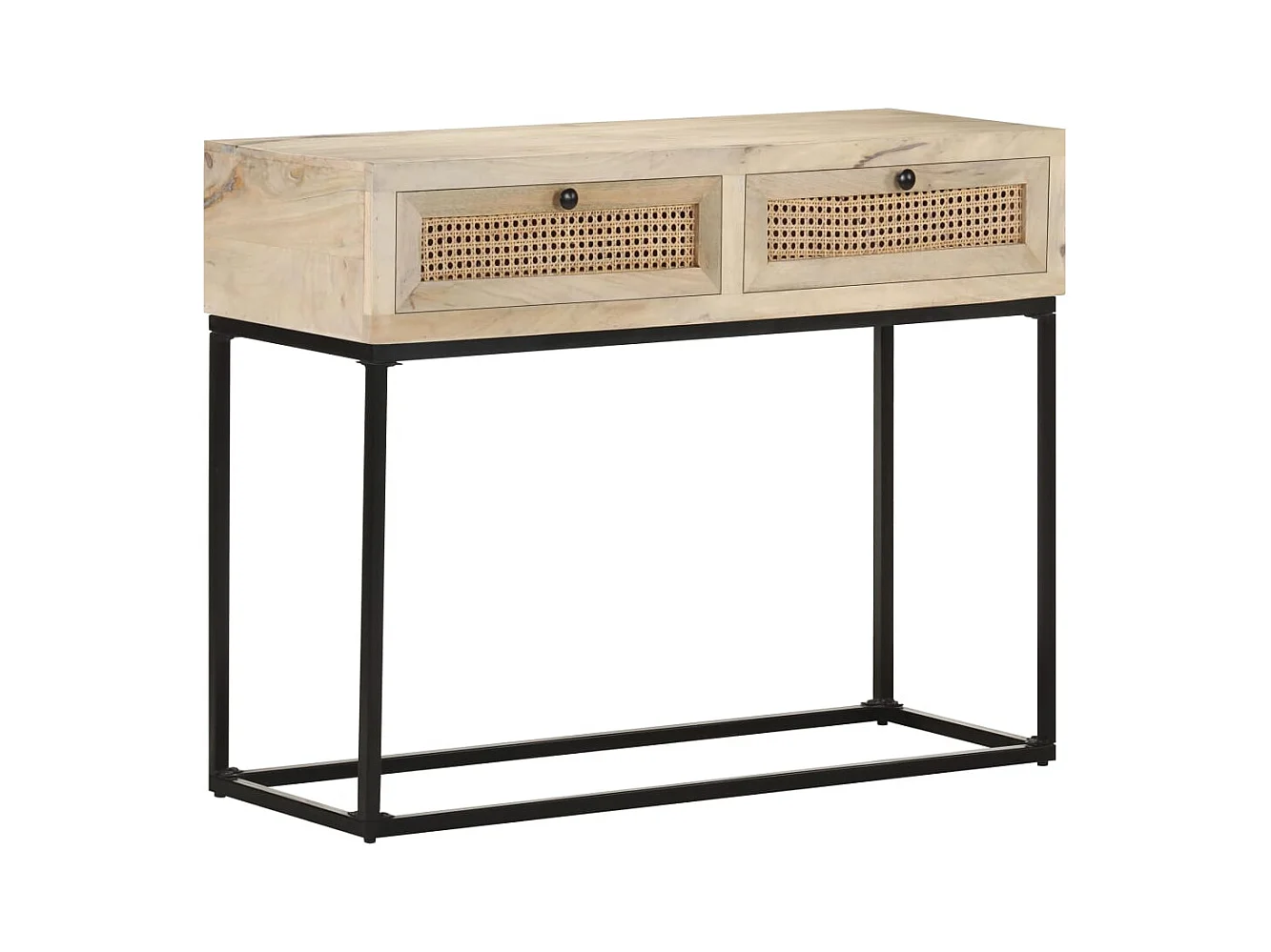 Consoletafel 100x35x76 cm Mangohout en natuurlijk riet