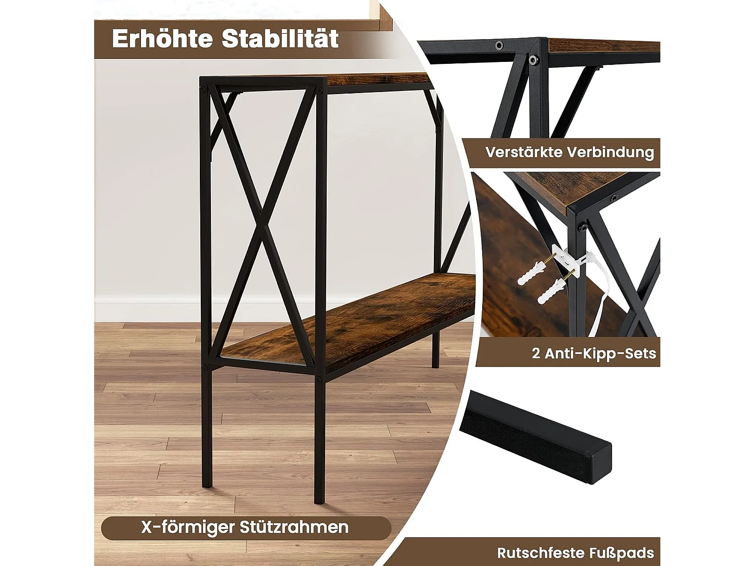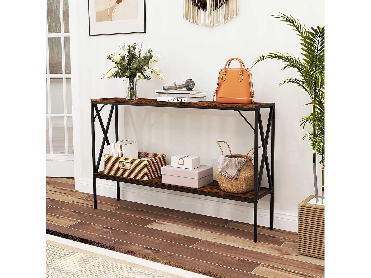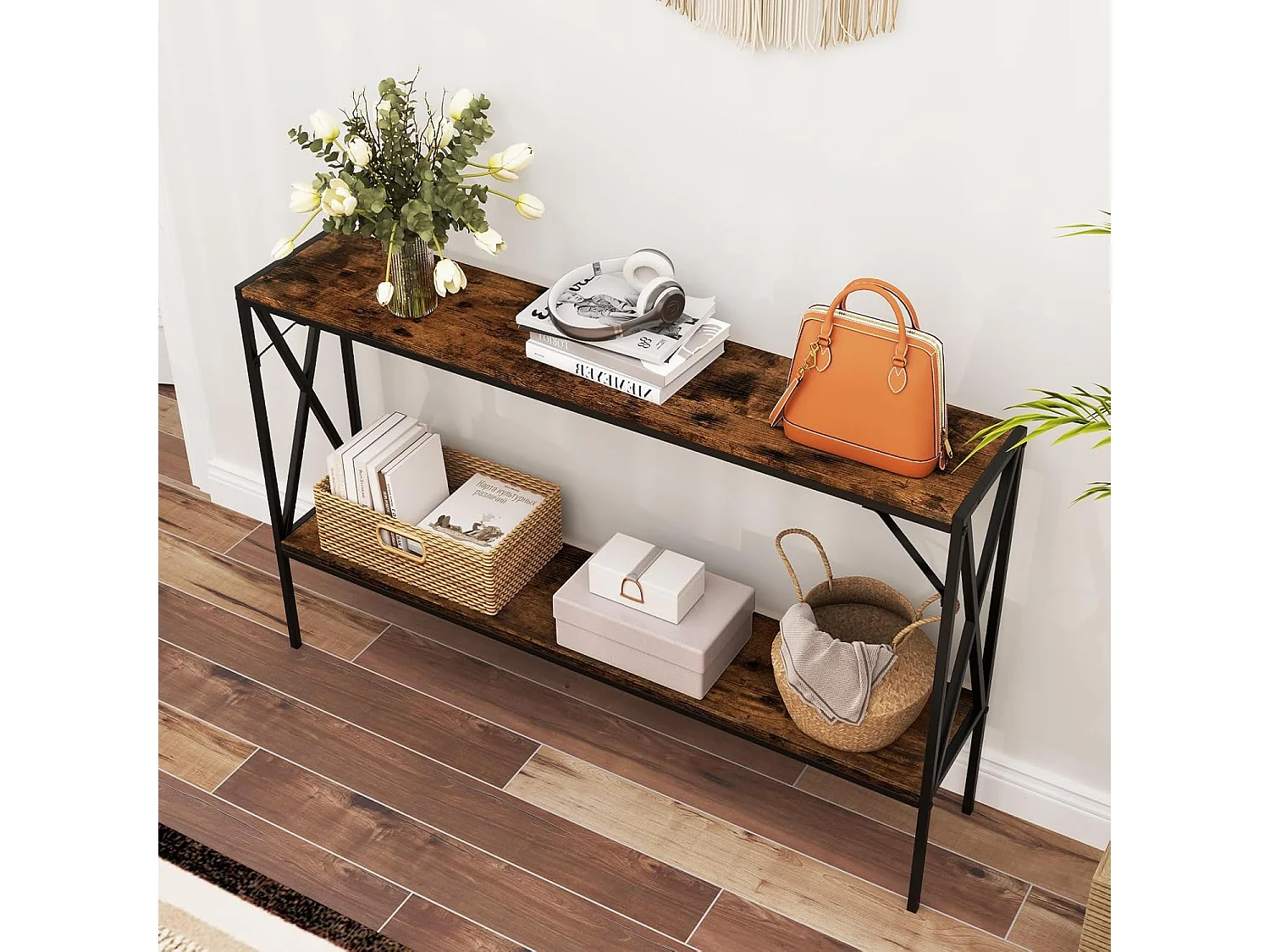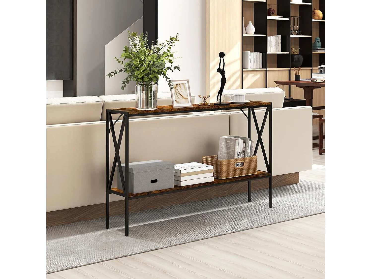 Consoletafel, 120 cm, smal, banktafel met geometrisch metalen frame, bijzettafel, 2 niveaus voor woonkamer, hal, ingang, industrieel designVH34356
