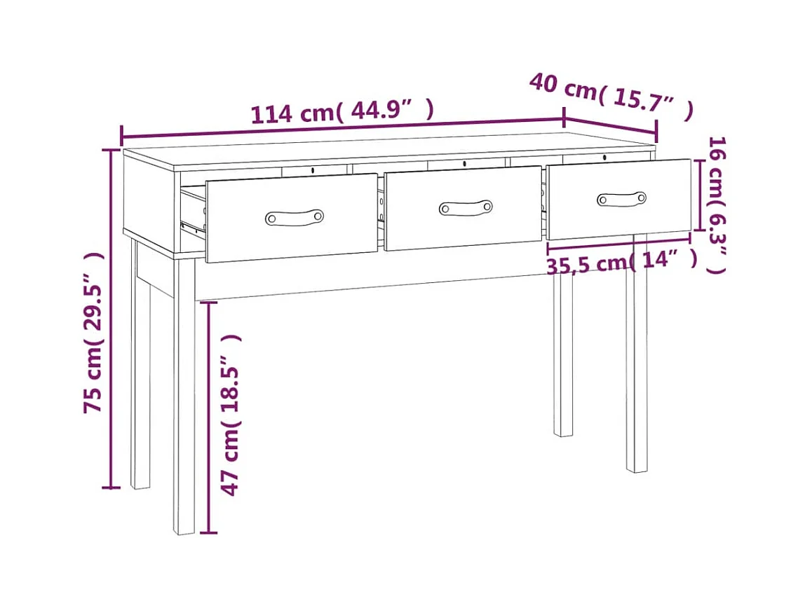Consoletafel met 3 lades 120x30x75 cm Massief hout